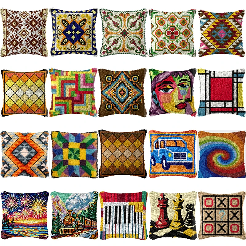 Kit de alfombra con gancho de pestillo geométrico de patrón Simple clásico, Material de bordado, almohada bordada tejida a mano, gancho de cierre, almohada DIY