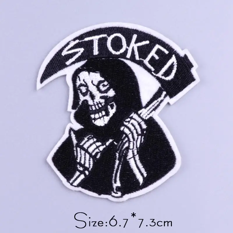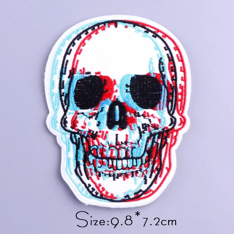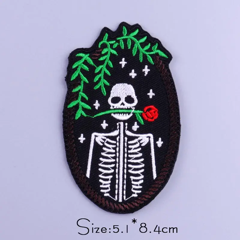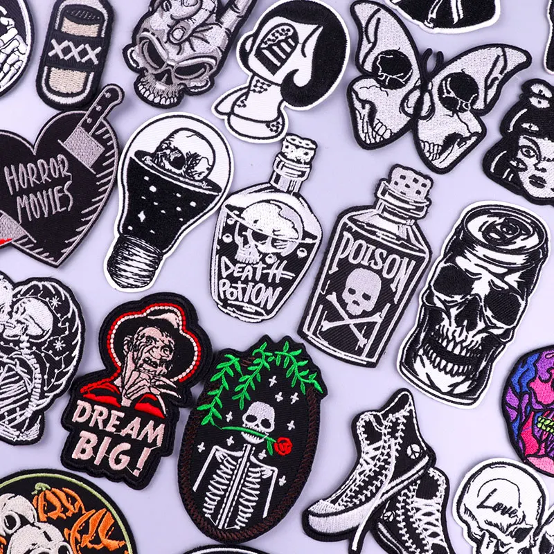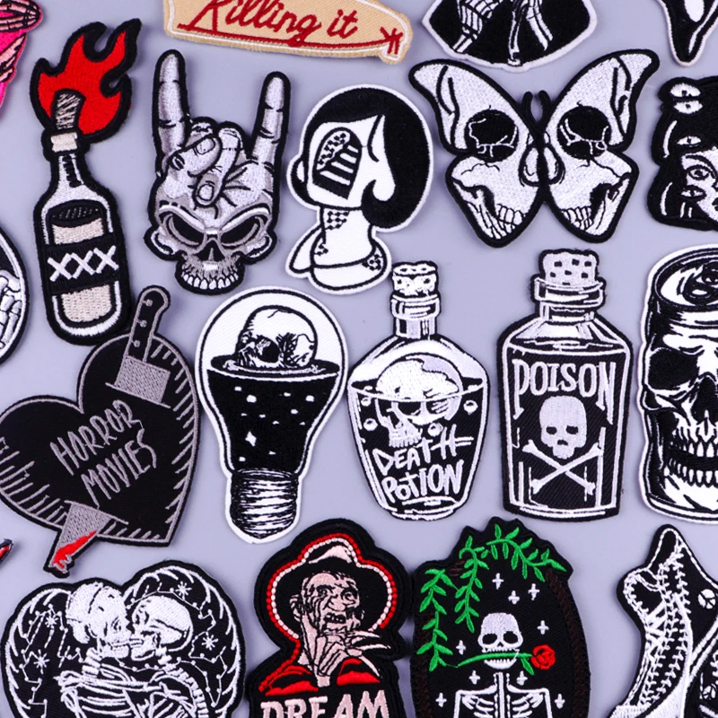 Skull Patches On Clothes Hippie Rock Punk Patch Embroidered Patches For Clothing Iron On Patches Horror Stripes Stickers Badges