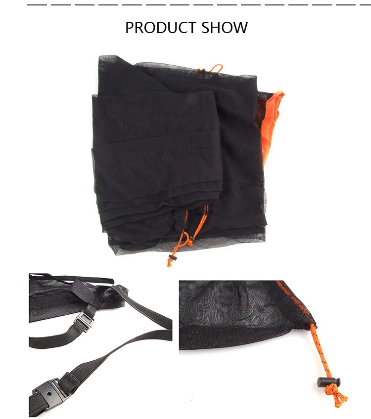 Descripción general del producto: El producto es un sistema de protección contra mosquitos hecho de malla de alta densidad, adecuado para deportes al aire libre, peso ligero, pequeño volumen de almacenamiento y mallas pequeñas que pueden bloquear eficazmente a los mosquitos.
