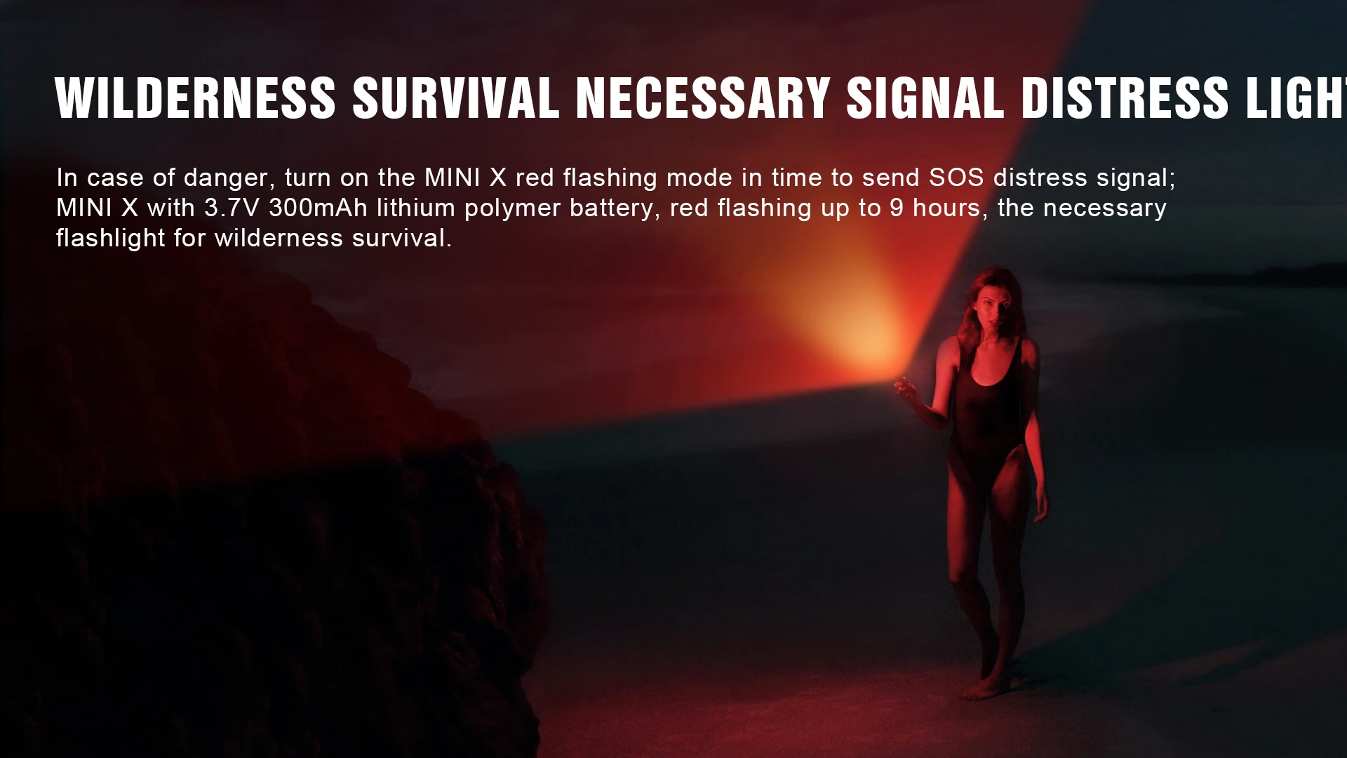 En caso de peligro, encienda el modo de parpadeo rojo MINI X a tiempo para enviar la señal de socorro SOS; MINI X con batería de polímero de litio de 3,7 V 300mAh, parpadeo rojo hasta 9 horas, la linterna necesaria para la supervivencia en la naturaleza.