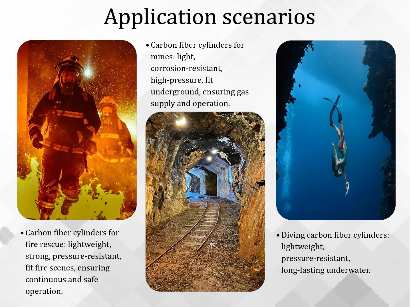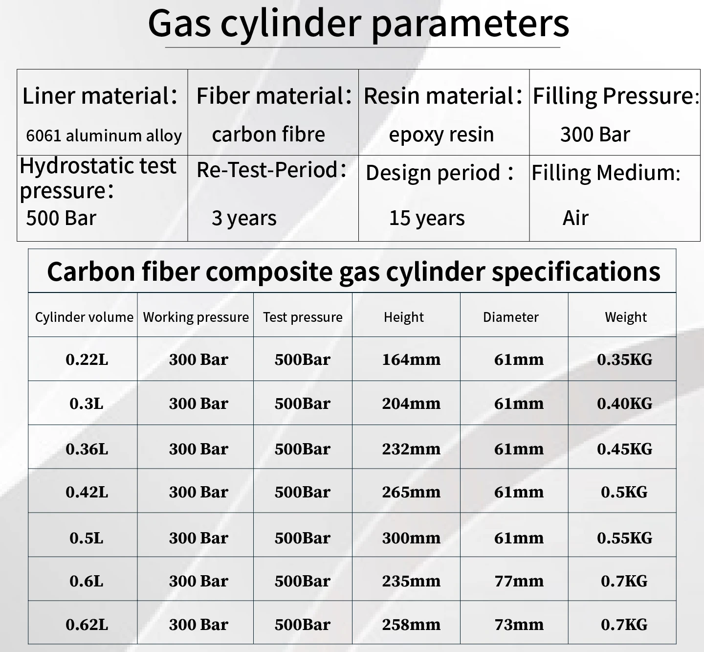 Elaborado con fibra de carbono robusta, este cilindro combina resistencia con un diseño liviano, ideal para uso portátil.