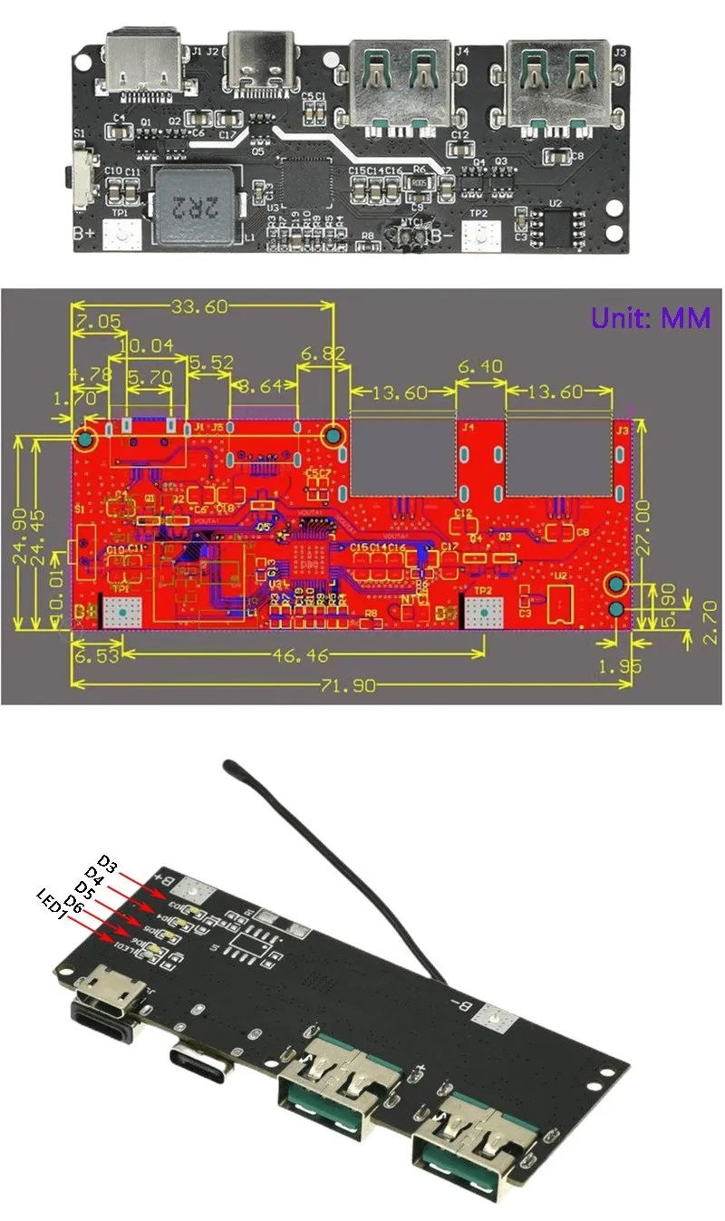 D3, D4, D5 and D6 are power LED. LED1 is the fast charge indicator.
