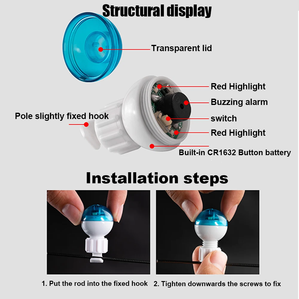 2.Con el método de fijación con anzuelo fijo, se puede instalar fácilmente en cualquier tipo de caña de pescar sin herramientas ni pasos complicados.