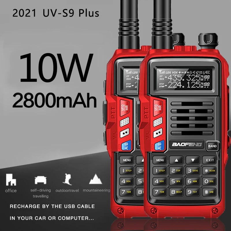 4.Batería de iones de litio de mayor capacidad equipada con una batería de iones de litio de 2800 mAh.UV-S9 Plus es liviano y práctico. Simplemente presione la tecla PTT para hablar: incluso de noche encendiendo la linterna LED incorporada y la comunicación manos libres con función VOX incorporada.