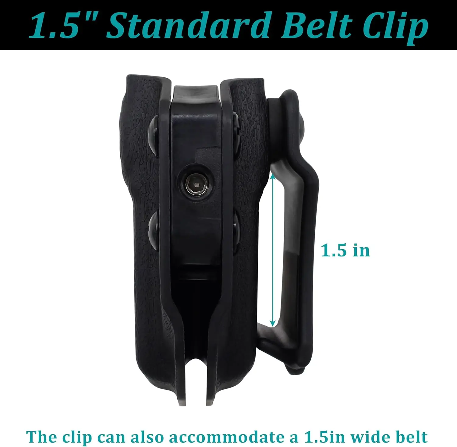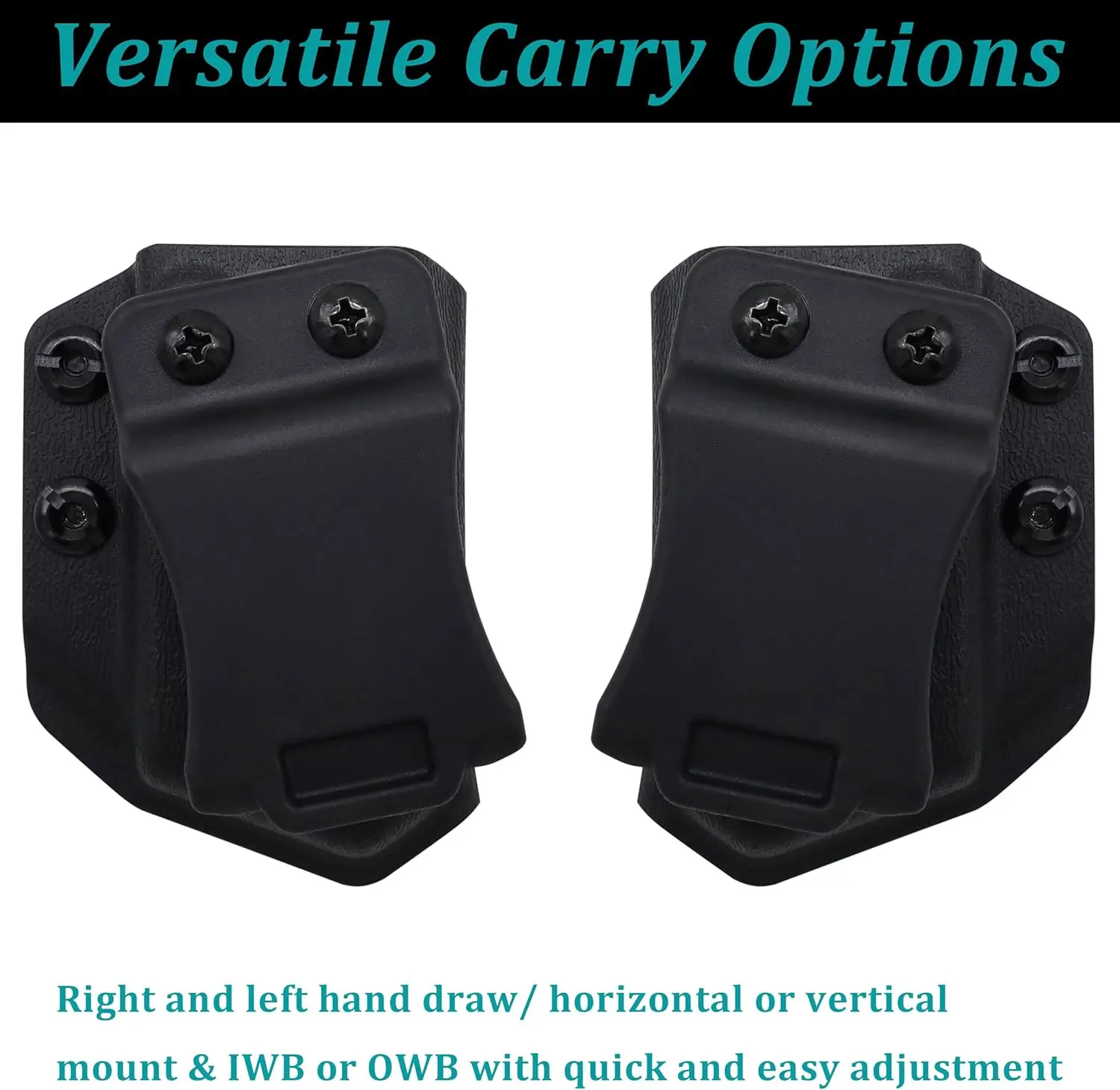 2. 【Fácil de usar】 Viene con un clip rápido de 1,5" que lo hace extremadamente rápido y fácil de poner y quitar. Se puede cambiar de lado a lado, se puede usar fuera de la cintura (OWB) o dentro de la cintura (IWB) para tiradores diestros o zurdos.Se pueden realizar 0-25 grados de inclinación ajustable con los orificios ranurados a cada lado del soporte.
