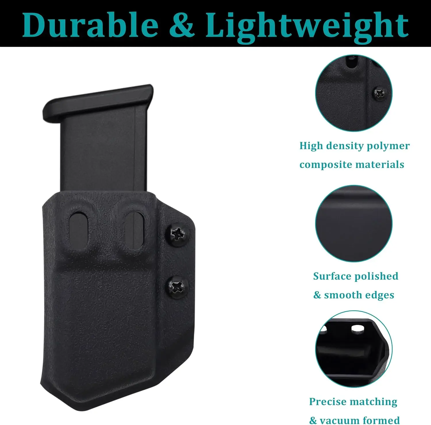 1. 【Ocultación duradera y segura】 Hecho de plástico de calidad, formado al vacío y superficie pulida, con bordes lisos y combinación precisa. El diseño cerrado garantiza que las rondas no se salgan del cargador involuntariamente.