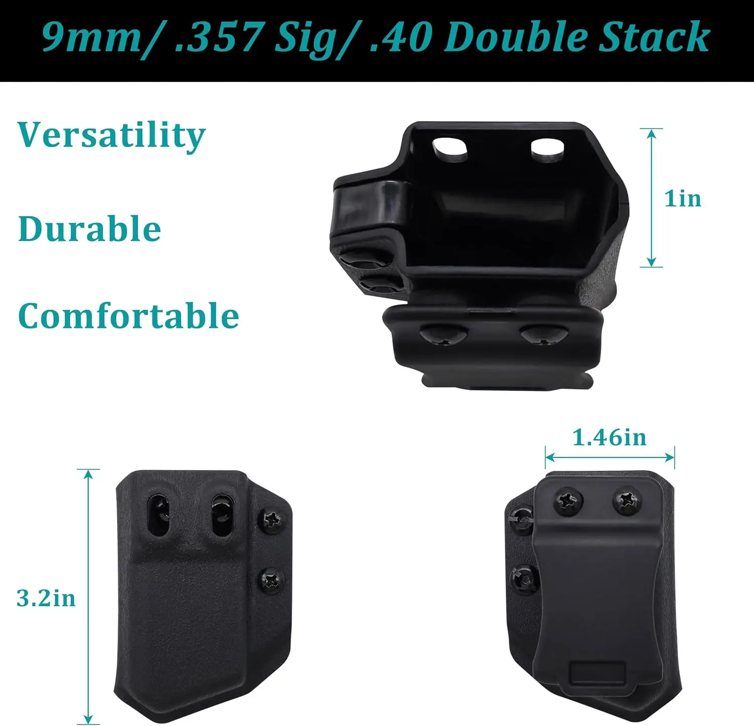4.【Modelo disponible】Compatible se adapta prácticamente cada 9 mm/.357 Sig/.40 Revista doble/pila y apilada escalonada, incluidas, entre otras, para los modelos Glock 17,19, 222,23,26,27,21,32,33,34,37,38,39, 43x,43X MOS,48.48 MOS, para Sig P320/P365/P365 SAS/P365 SAS con P365X/XL, para S&W M&P Compact, para S&W M&P M2.0/PLUS, para CZ P07/P10C, para H&K VP9/VP40/VP9SK, para armadura Springfield XD/MOD.2/XDM/HELLCAT, para Taurus PT111 G2/G2C/G3C, para PSA Dagger Compact, etc.