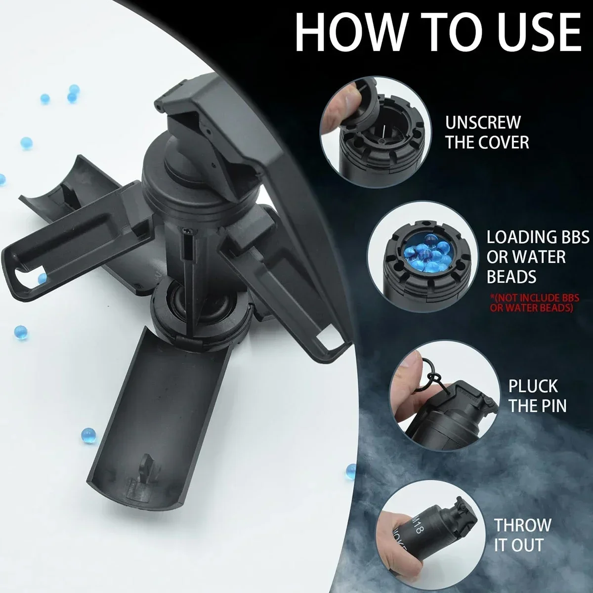 Amplio rango de extensión con un diámetro de 3 a 6 m, puede cargar hasta 100 BBS de 6 mm u otros (balas o harina de cristal, flores de colores, etc.
