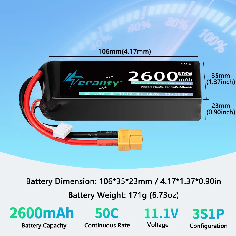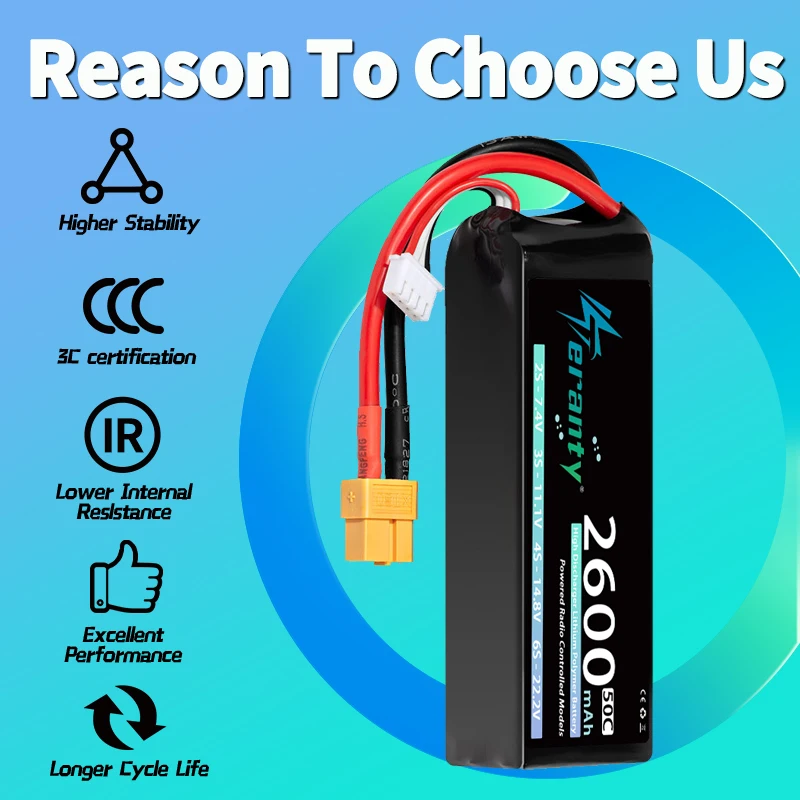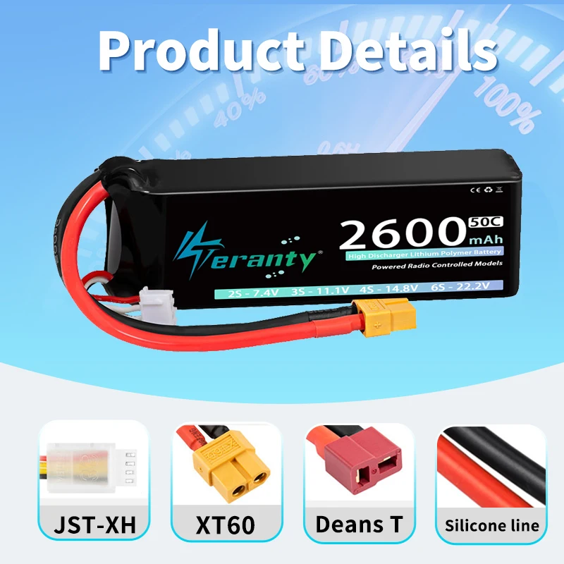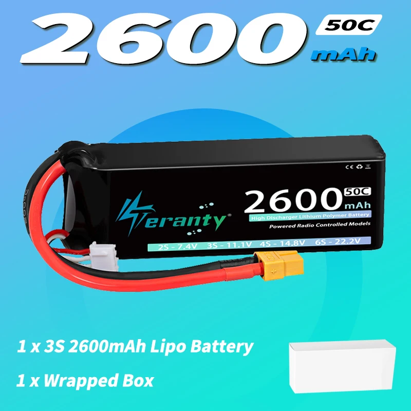 1/2 Uds Teranty Lipo batería 3S 2600mAh 11,1V 50C/100C estuche suave con enchufe T XT60 para FPV Drone avión RC coche camión piezas de barco