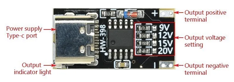 1.Recorte el voltaje del cargador/tesoro de carga rápida y utilícelo como fuente de alimentación de CC.Por ejemplo, deje que el banco de energía de carga rápida produzca 9 voltios,
