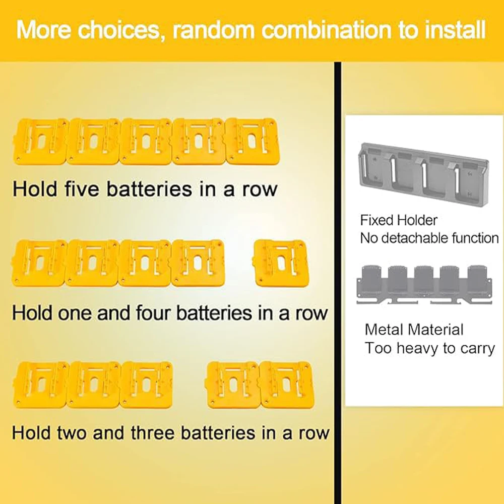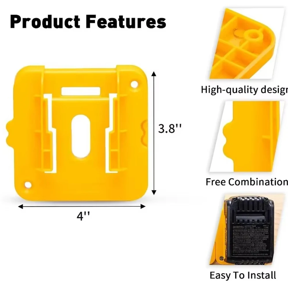 Proporciona la manera perfecta de almacenar y transportar baterías de la serie Dewalt de 18 V: móntelas en una pared, en un panel en una furgoneta o en un estuche.