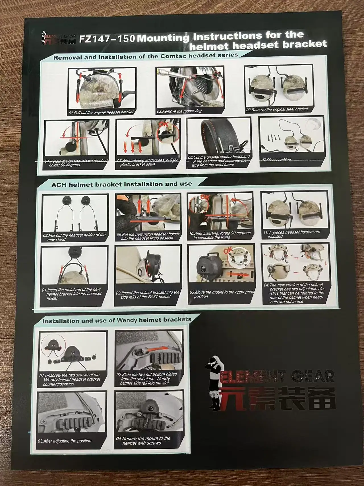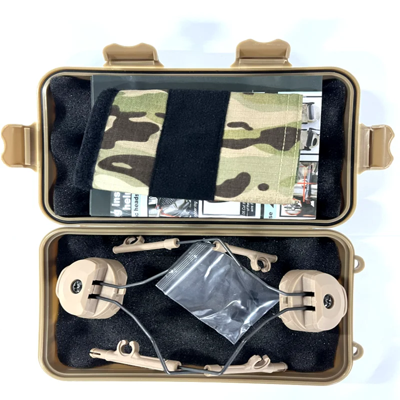 Un par de soportes de suspensión para auriculares, 1 diadema de camuflaje del desierto, 1 caja de embalaje de plástico