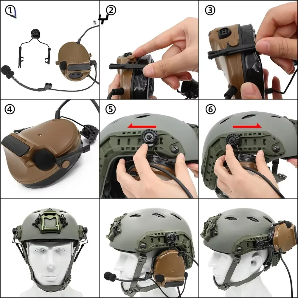 .Soporte para auriculares de suspensión, apto para cascos FASR y cascos con rieles ARC.