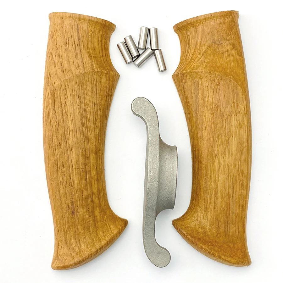 1 Juego de mango de cuchillo de madera de pera amarilla para bricolaje, Material de mango de cuchillo semiacabado con protector de cuchillo, accesorios de hoja para hacer bricolaje