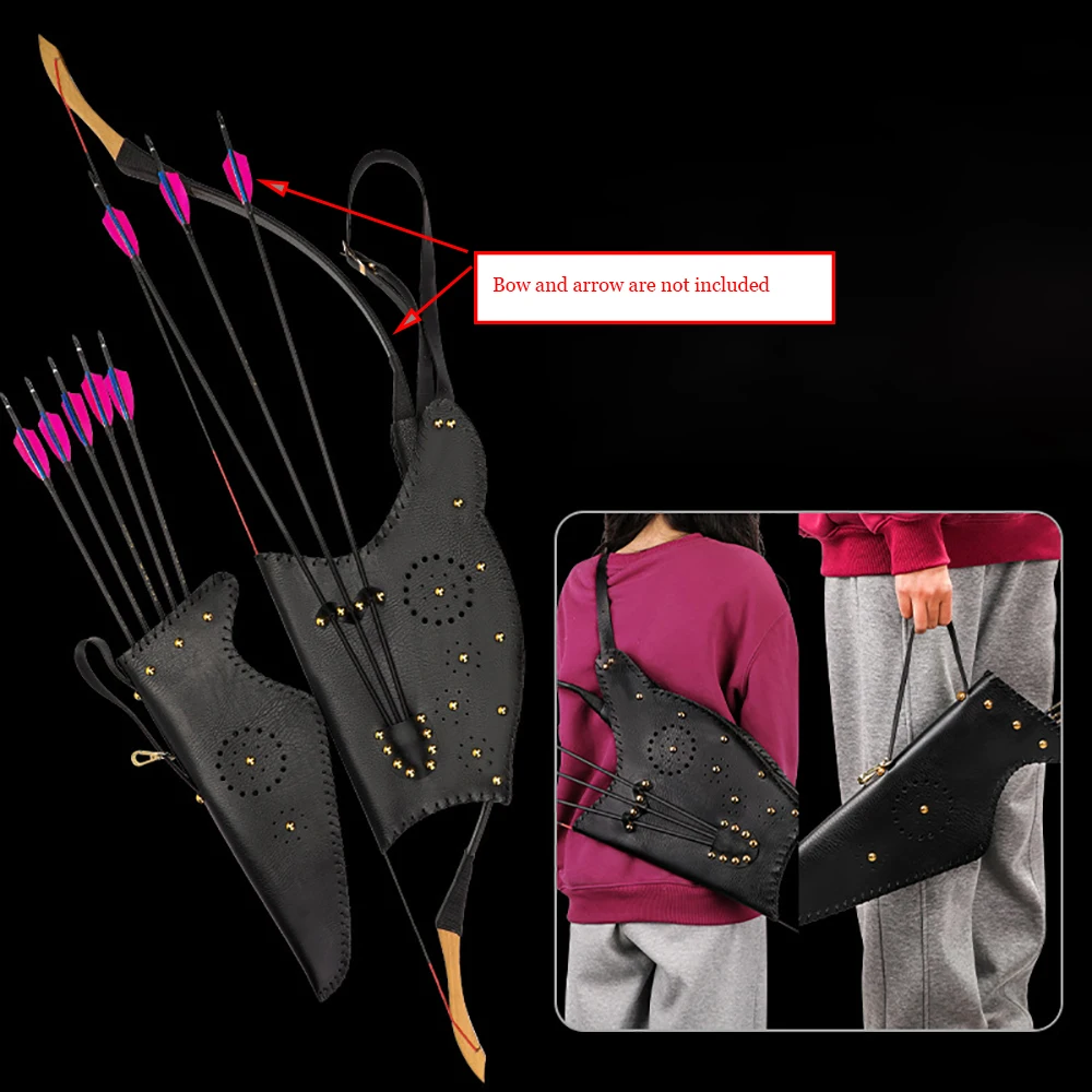 1 Juego de mochila con arco de tiro con arco tradicional arcos y flechas Aag néк для ст⚡льбы Estuche Caudal y bolsa de arco Bolsa con soporte para caudal de flecha
