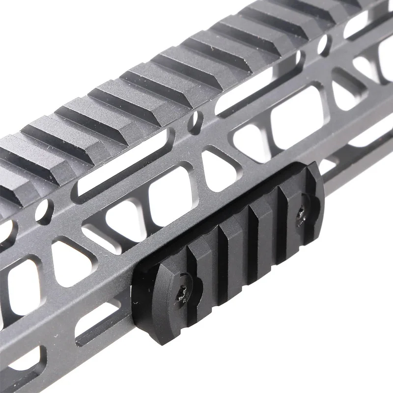 1. Juego de rieles de accesorios individuales con especificación estándar.Permita la conexión de varios accesorios Mlok Picatinny/montados en riel. Para juegos de caza al aire libre y accesorios para armas de juguete