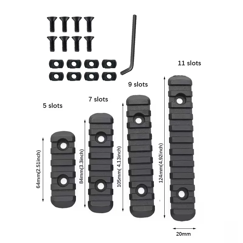 1 juego Picatinny/Rail con ranuras individuales 5/7/9/11 para sistema mlok, 8 tuercas en T, tornillos y llave Allen, para accesorios de pistola de juguete de caza