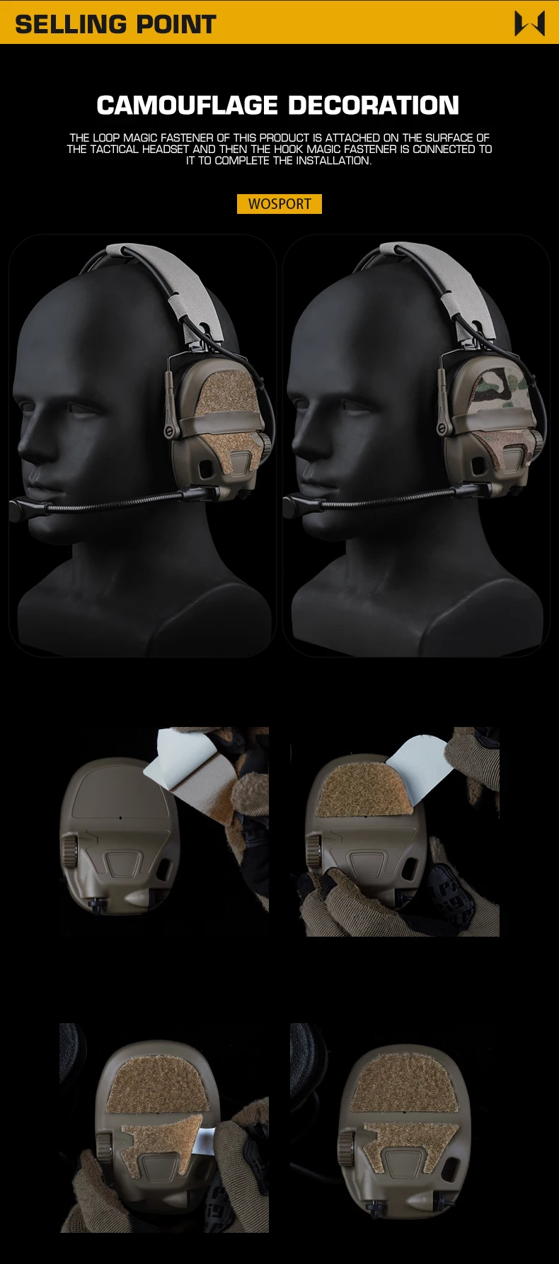 1 par de auriculares tácticos GEN6, cierre mágico (estilo AMP), parche mágico para AMP, caza, tiro, auriculares, orejeras