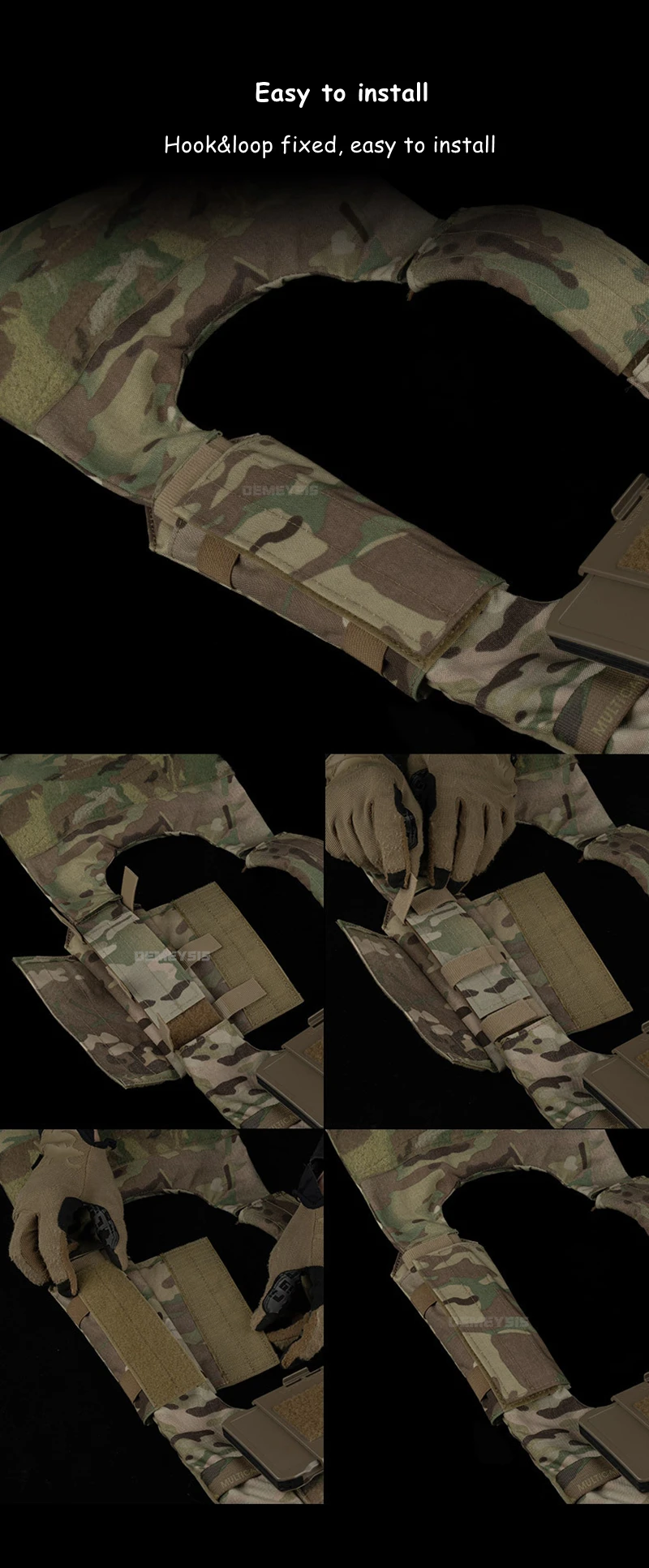 ⚡ Fijación de gancho y bucle – Instalación en 10 segundos en la mayoría de los chalecos.
