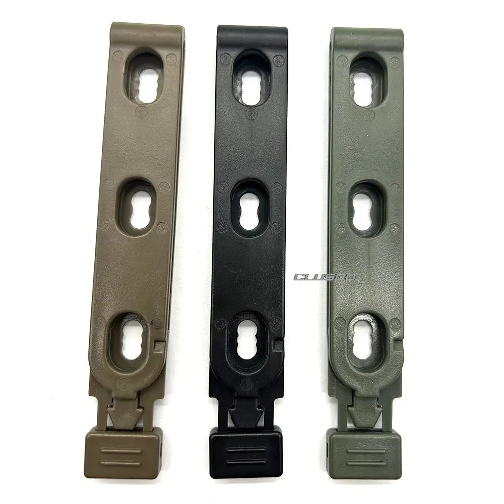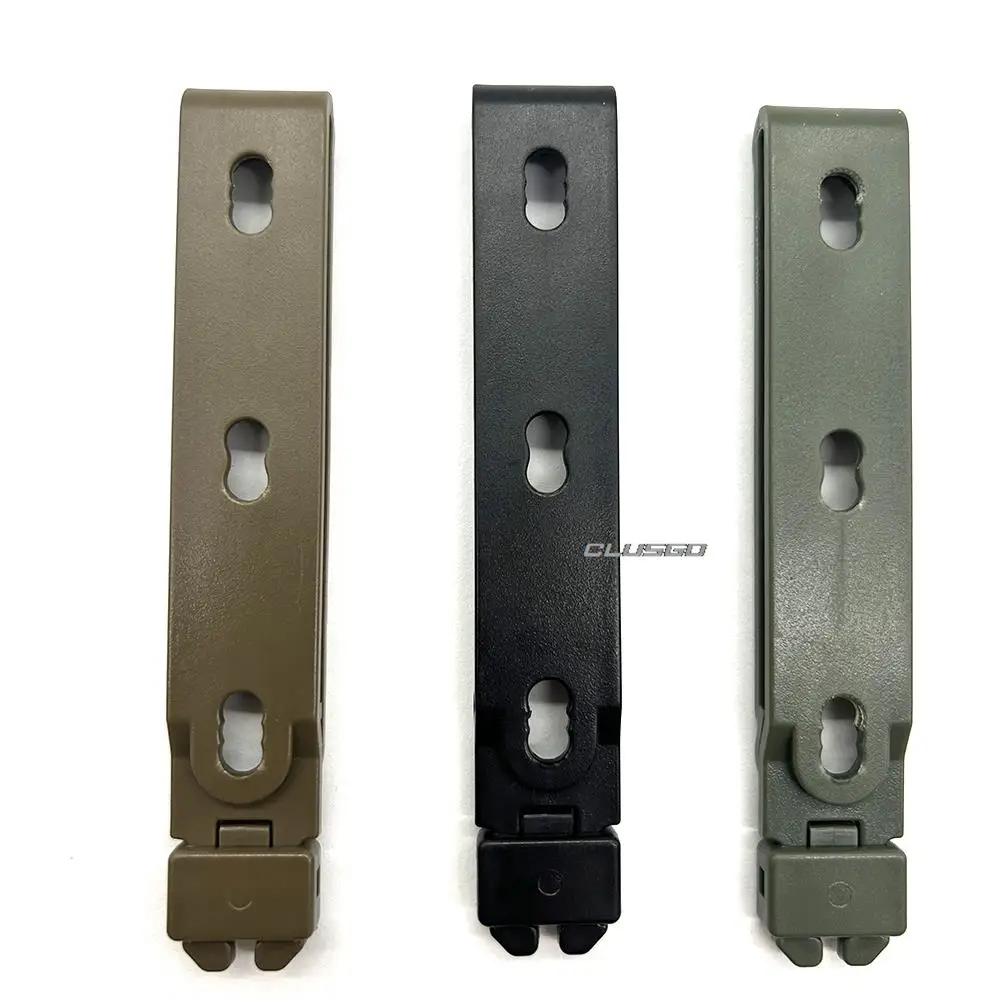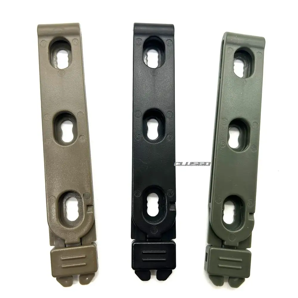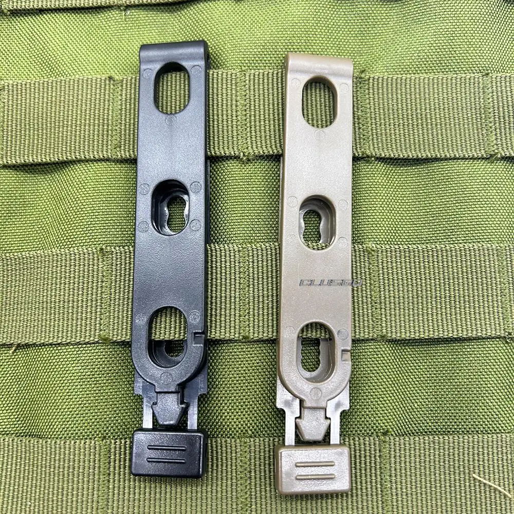 Un "clic" audible indica un cierre positivo. El mecanismo de bloqueo de Clip Molle evita cualquier oportunidad de una liberación no deseada del collar. Sin embargo, el diseño del clip molle permite una manipulación sin herramientas para un fácil ajuste de su equipo en el campo.