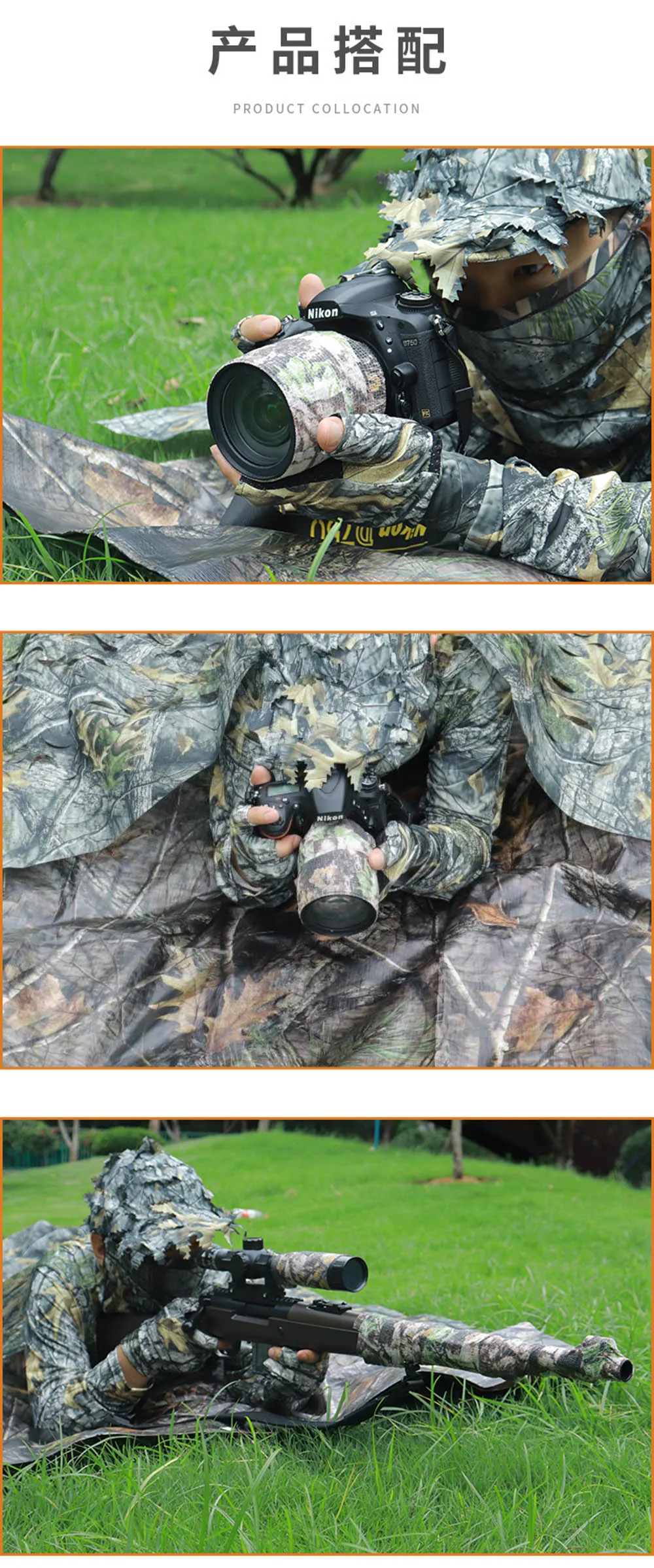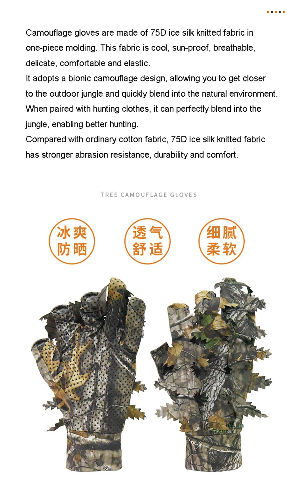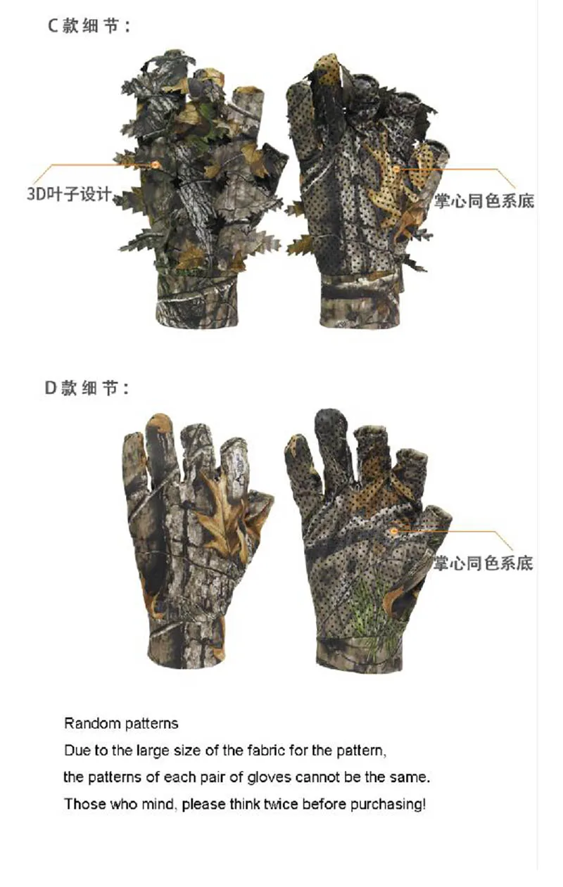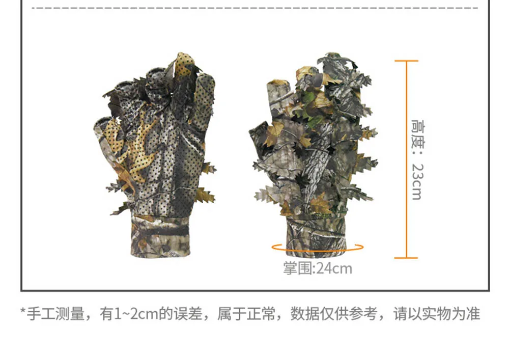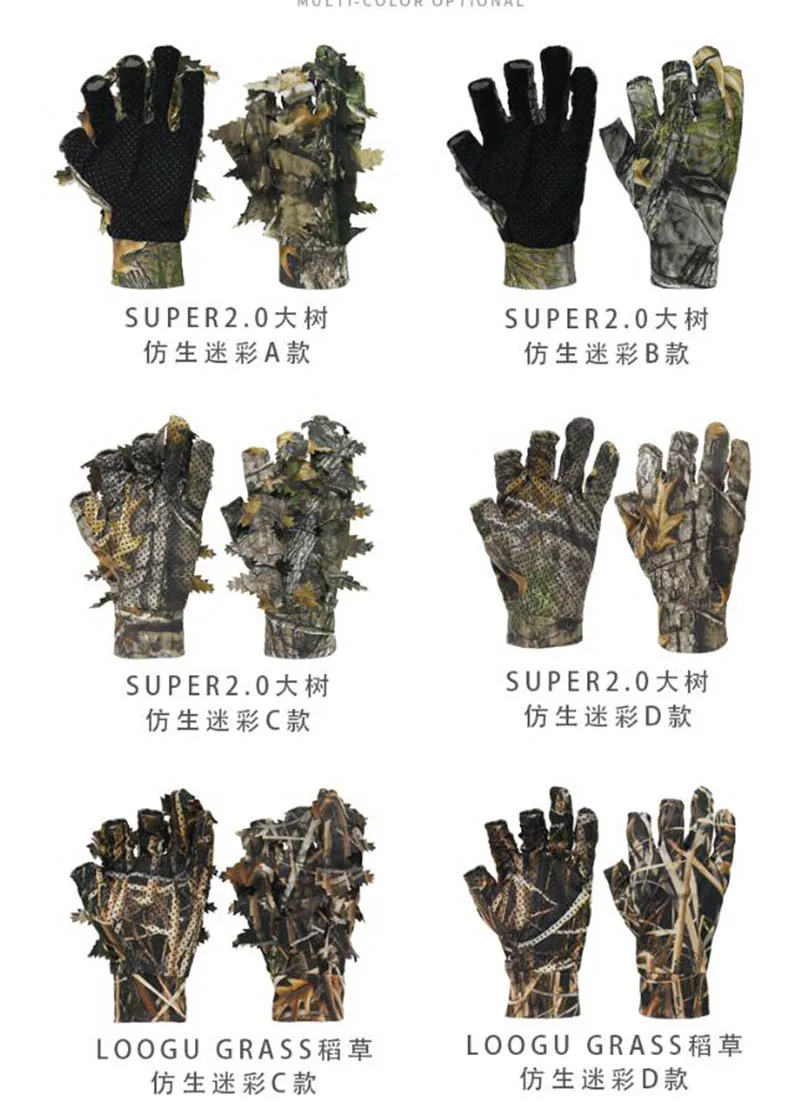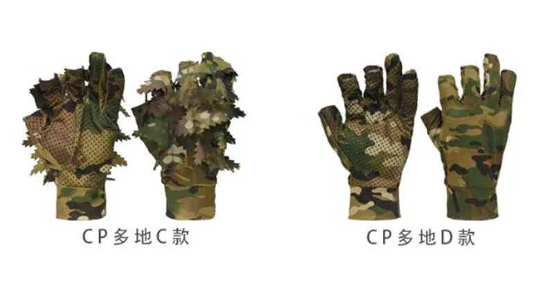 1 par de guantes de caza de camuflaje de hoja 3D biónico de árbol, cómodos, antideslizantes, duraderos para caza al aire libre, pesca, tiro CS