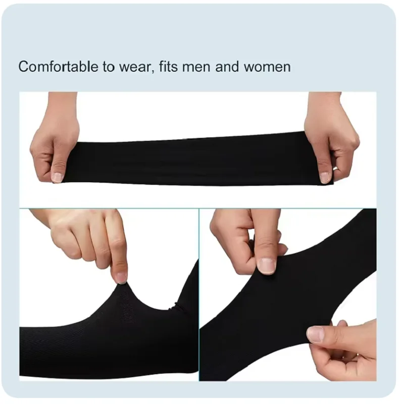1. Calidad superior: Hecho de nailon 80% y tela 20% Spandex, nuestras mangas de brazo para hombres y mujeres son muy elásticas y suaves de llevar.