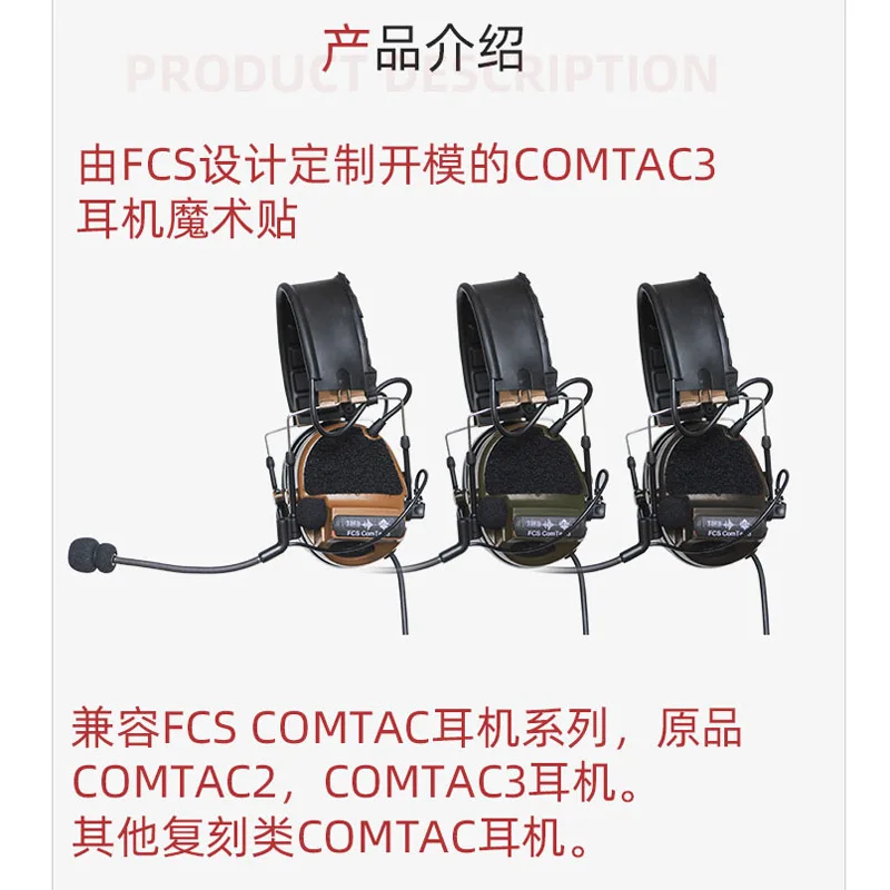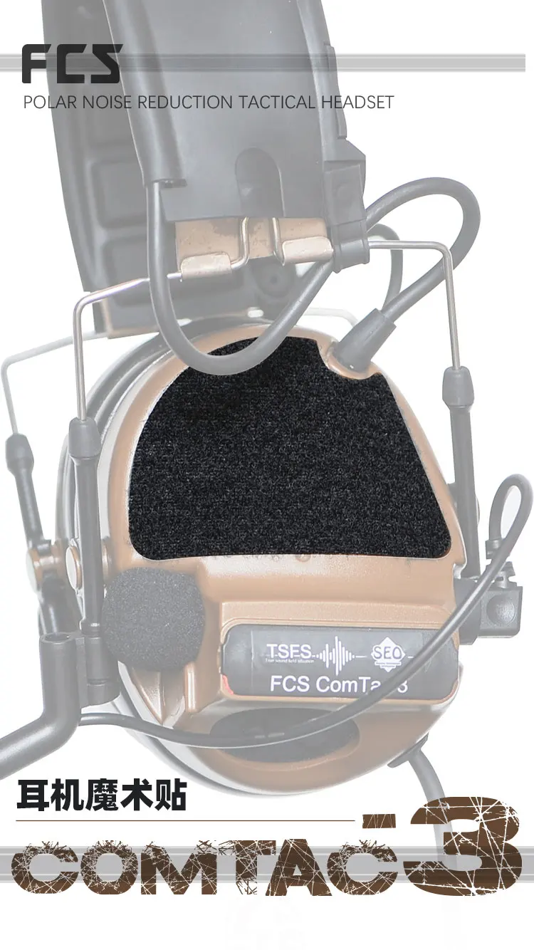1 par de pegatinas tácticas de gancho y bucle para auriculares COMTAC3, pegatinas decorativas de protección para auriculares