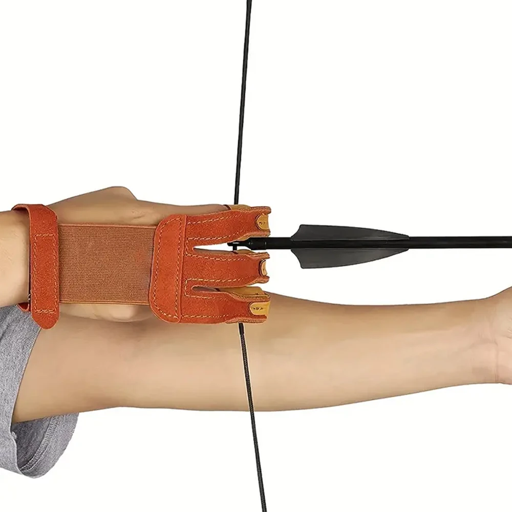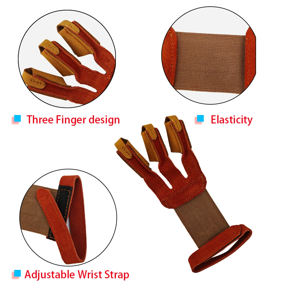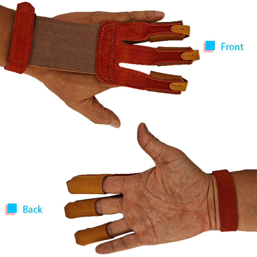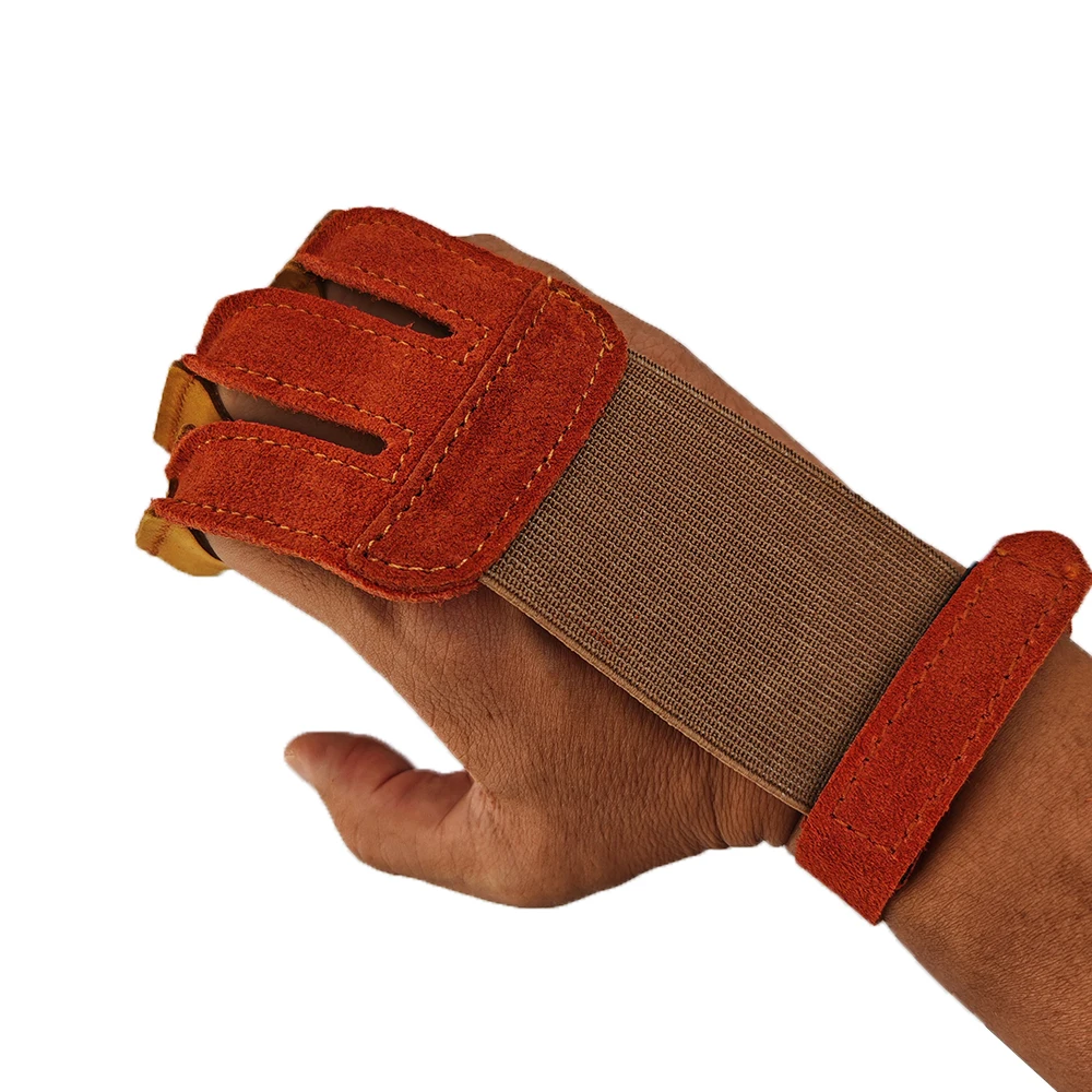 Protección de tiro con arco, protector de dedo de tiro con arco Premium, lengüeta de dedo de tiro con arco de 3 dedos, guante de cuero de vaca de alta calidad, 1 ud.