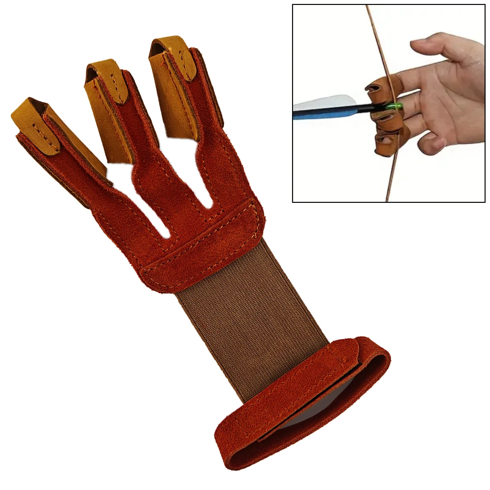 Protección de tiro con arco, protector de dedo de tiro con arco Premium, lengüeta de dedo de tiro con arco de 3 dedos, guante de cuero de vaca de alta calidad, 1 ud.