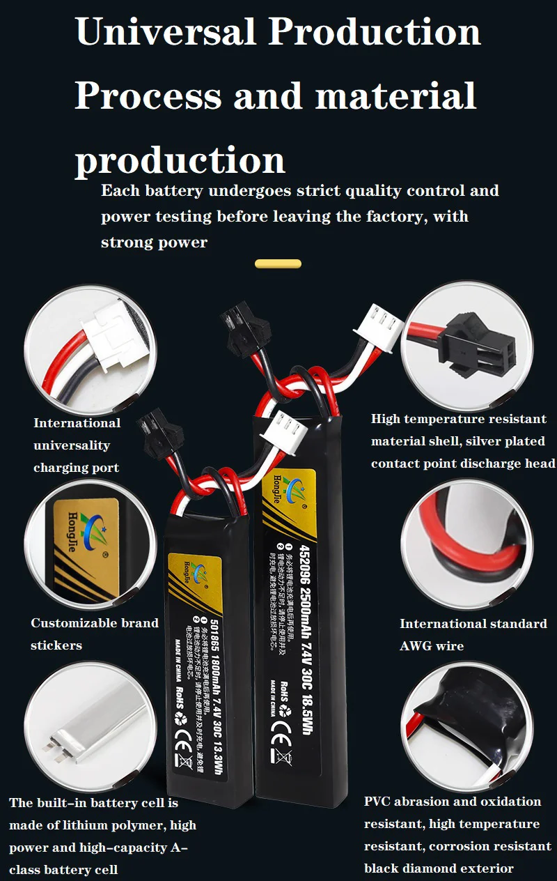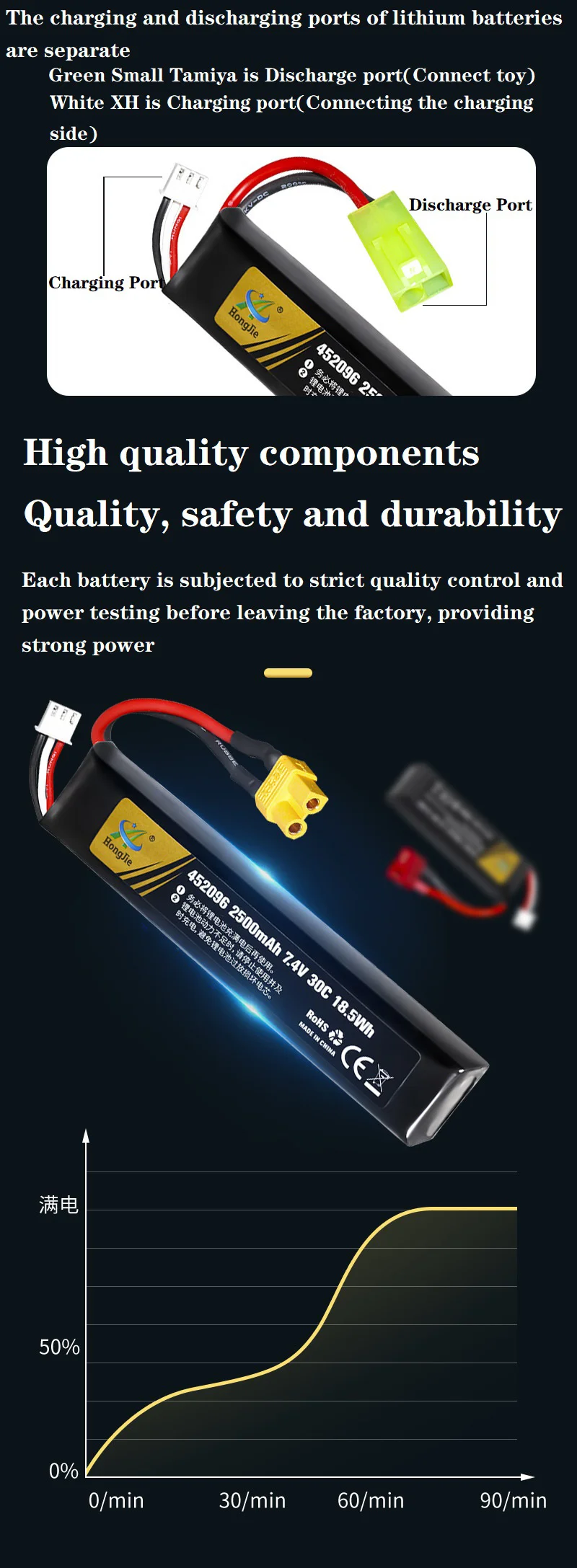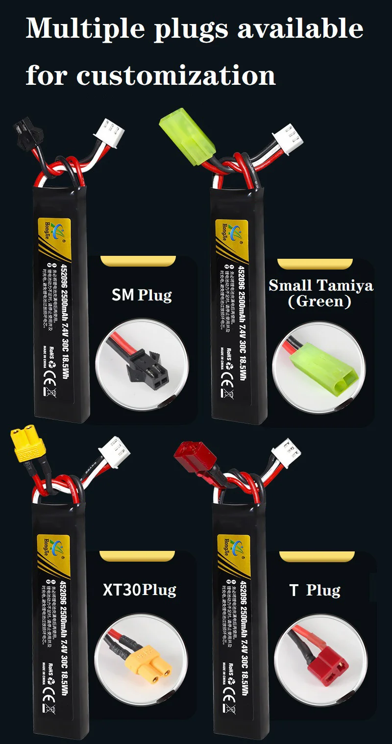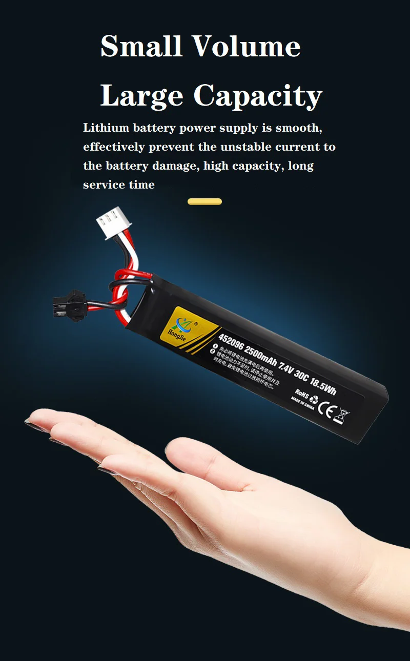 1 Uds 7,4 V 2500mAh pistola de agua Lipo batería T/TAMIYA para 2s 7,4 V batería para Mini Airsoft BB pistola de aire juguetes eléctricos piezas de pistolas