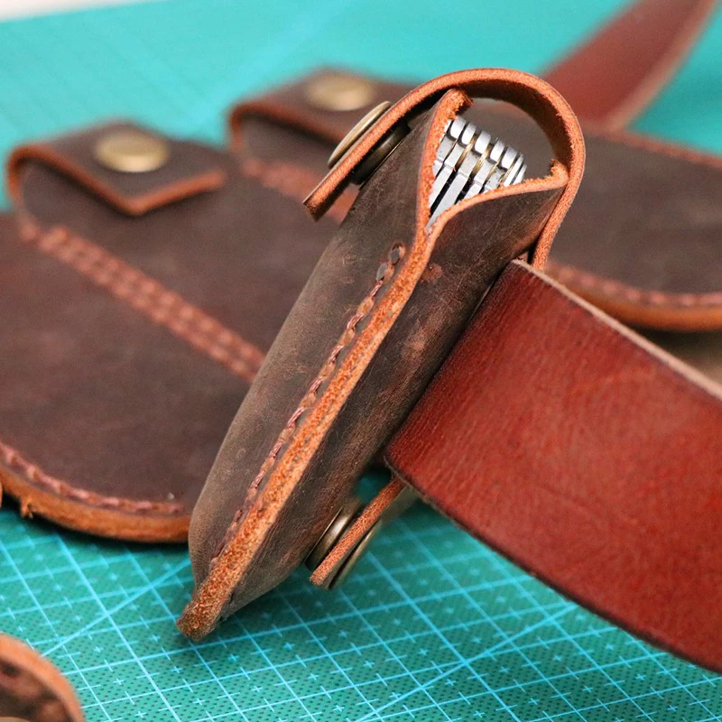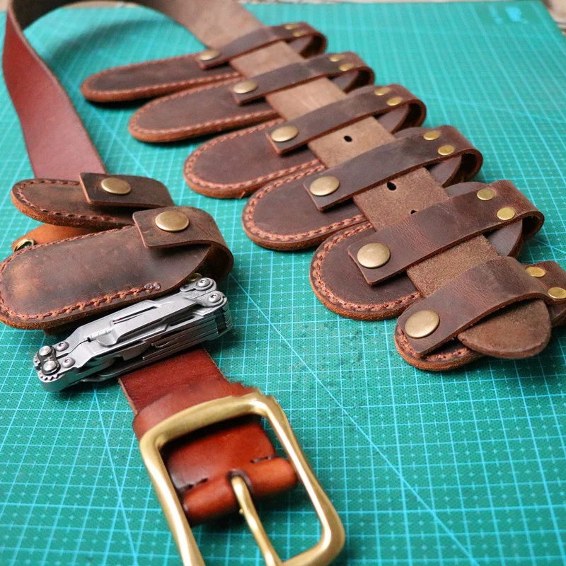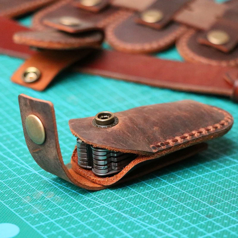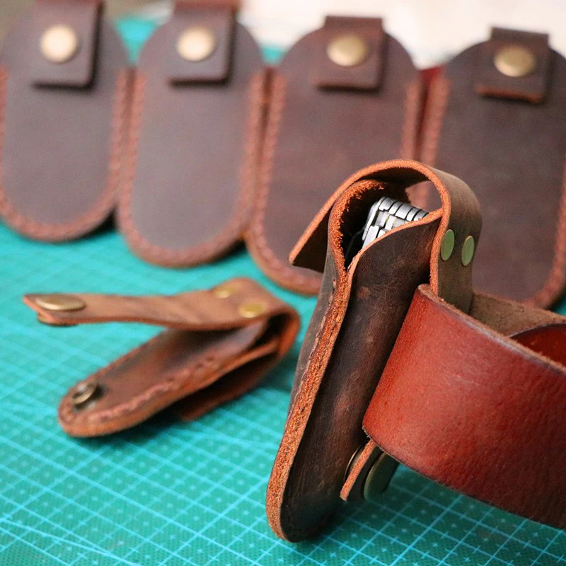 Funda de cuero Crazy Horse de capa superior de 10 tamaños para cuchillo plegable y alicates herramientas y cuchillos del ejército suizo