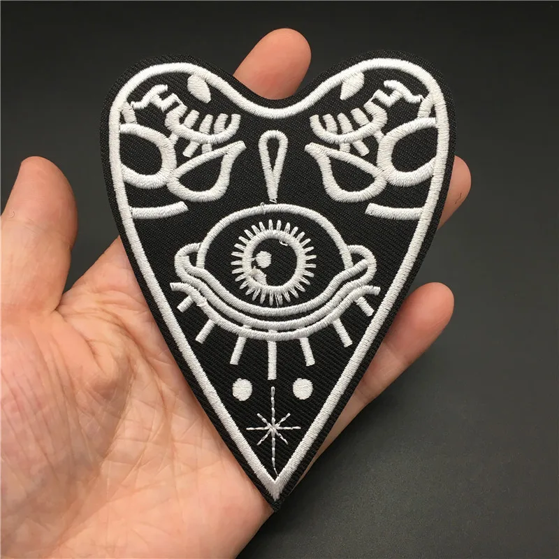 1 unidad de ojo en corazón tamaño: 8,3x10,6 cm, Parche de ropa DIY para mochila, pegatina de costura a rayas de hierro, aplique de insignia bordada