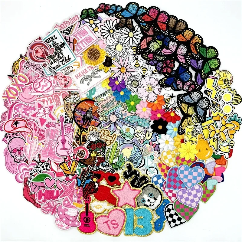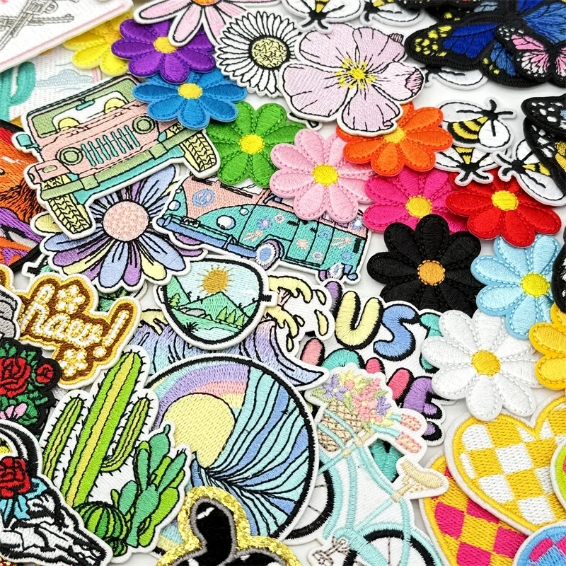 10/15 Uds nuevos estilos surtidos parches de hierro apliques para ropa DIY parches bordados decoración rayas pegatinas chaqueta de Jean