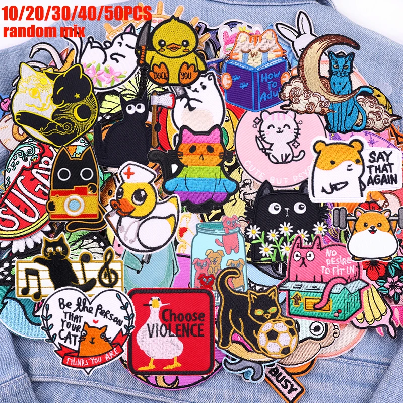 10/20/30/40/50 Uds. Parche aleatorio de animales de dibujos animados gato pato Corgi bordado DIY parches termoadhesivos para ropa