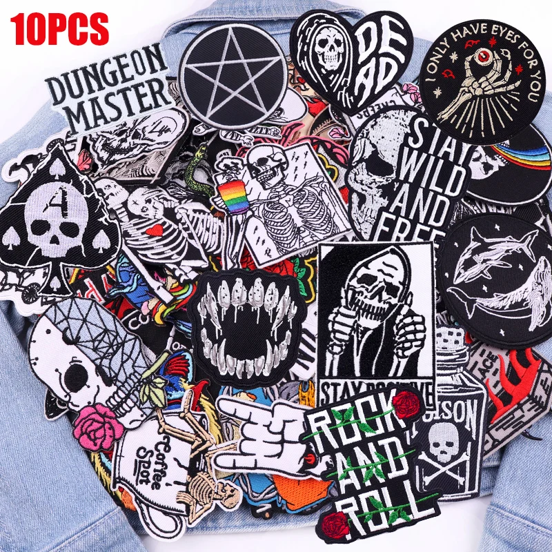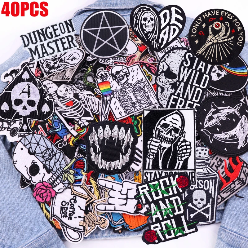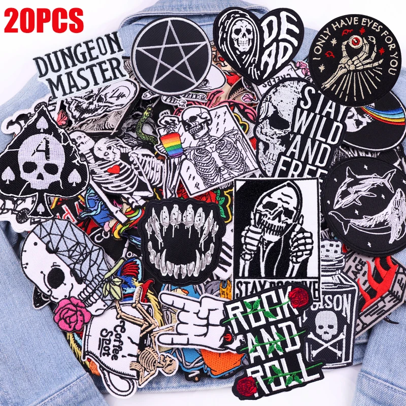 10/20/30/40/50 Uds parche aleatorio serie blanco y negro parches bordados de calavera Punk parches para planchar para ropa Jeans coser DIY