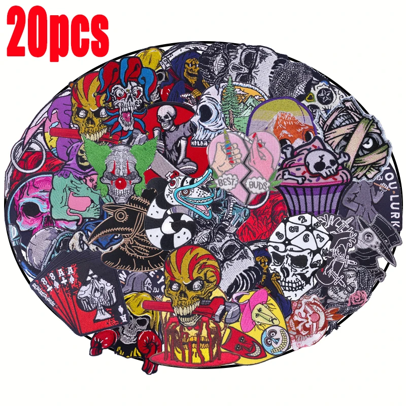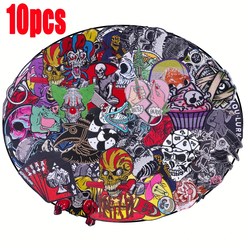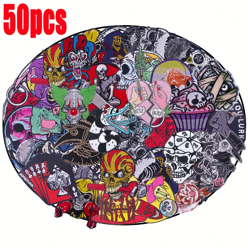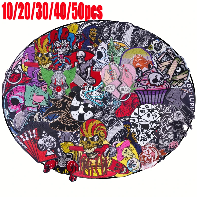 10/20/30/40/50 Uds., serie colorida aleatoria, parches bordados Punk de alta calidad, parches de hierro con calavera de terror DIY para ropa