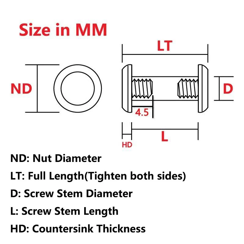 D (diámetro del vástago del tornillo): 5MM