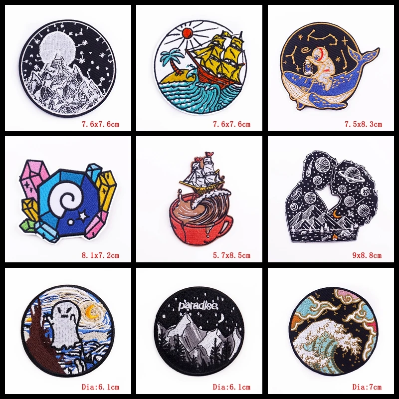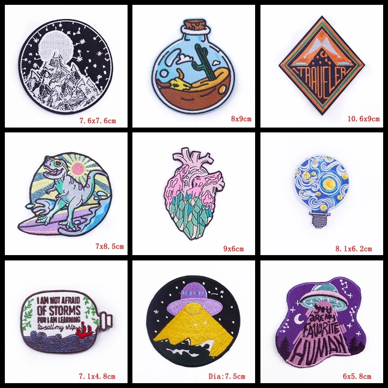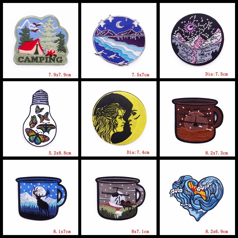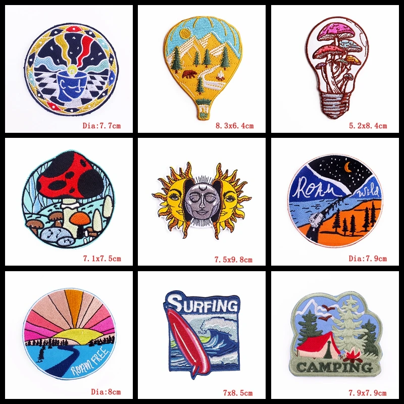 10 Uds. Parches bordados de hierro para aventuras con apliques de ondas espaciales para pegatinas de ropa, parches para montañas al aire libre en ropa DIY