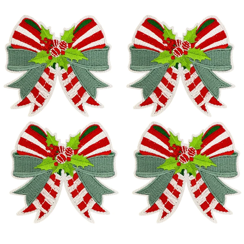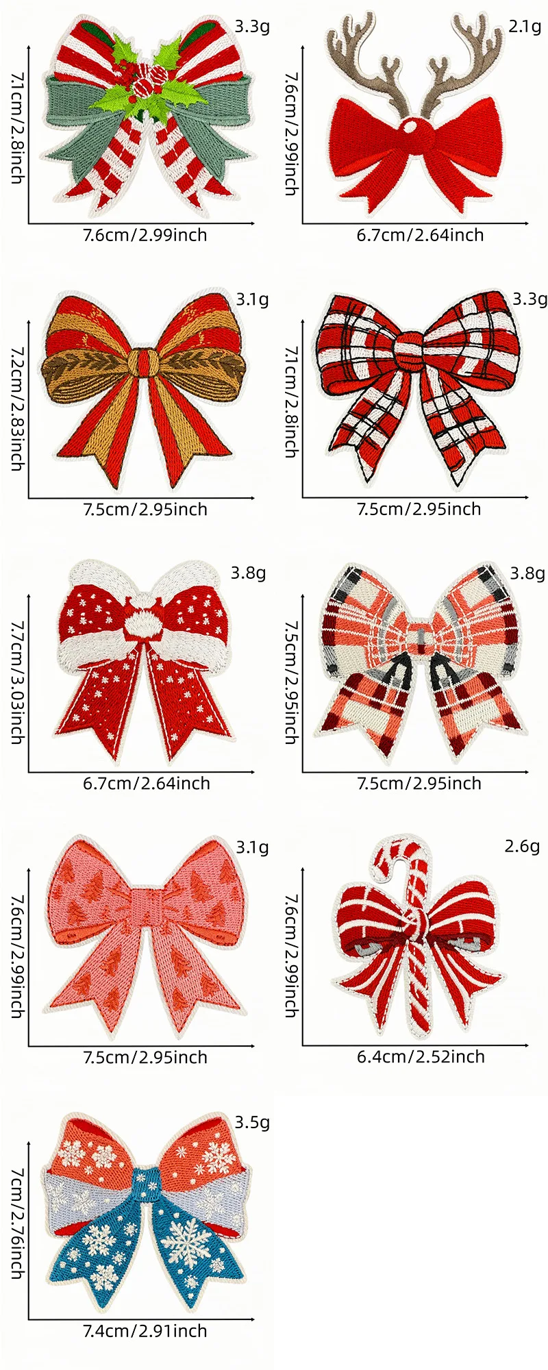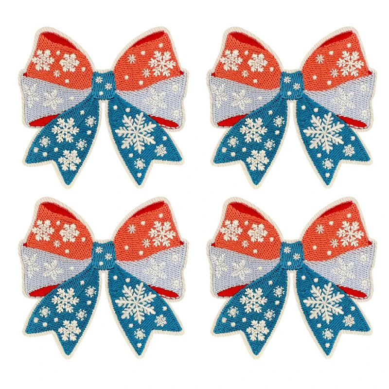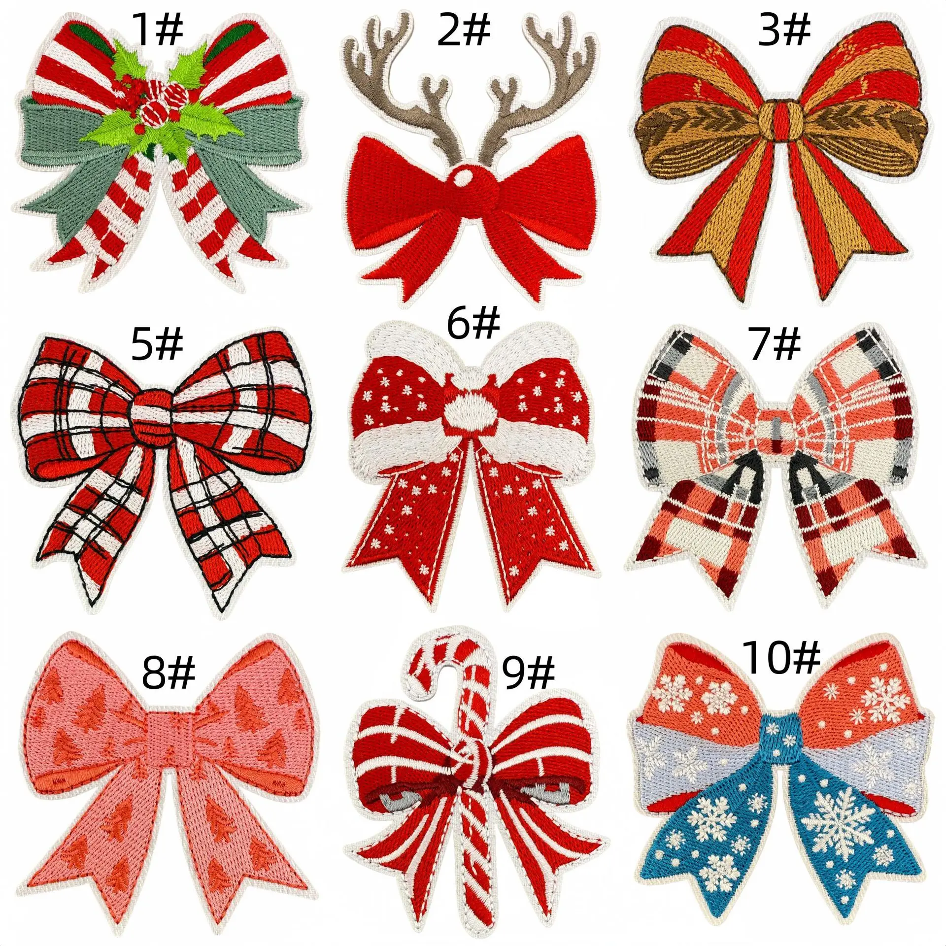 10 Uds. Parche de lazo de Navidad colorido bordado DIY dibujos animados copo de nieve parche de hierro en parches para ropa coser insignias bordadas DIY
