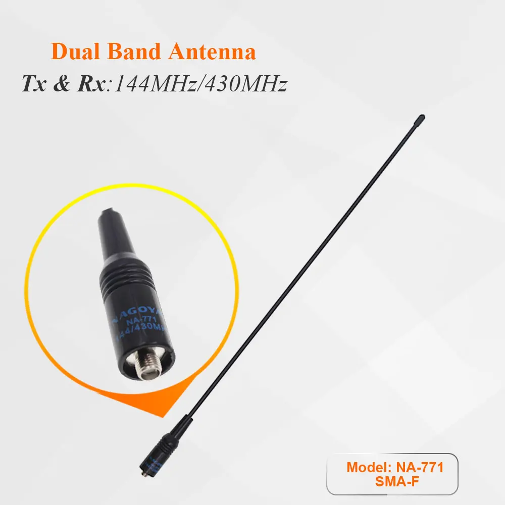 NAGOYA NA-771 SMA hembra SMA-F antena Flexible de doble banda ancha VHF/UHF 144/430MHz Radio bidireccional BAOFENG UV-5R BF-888S