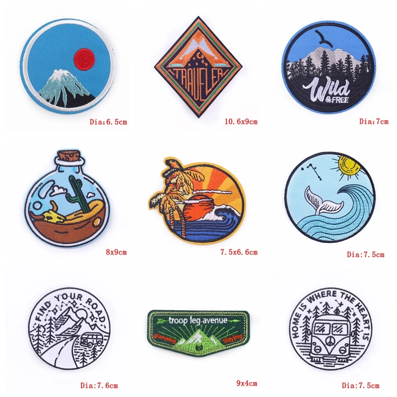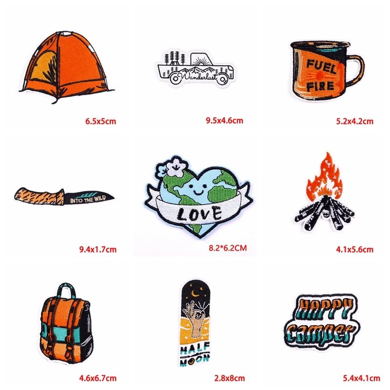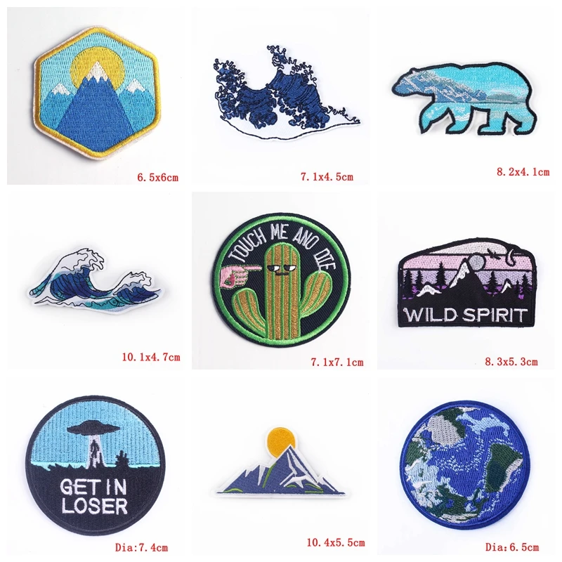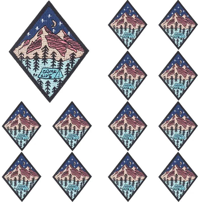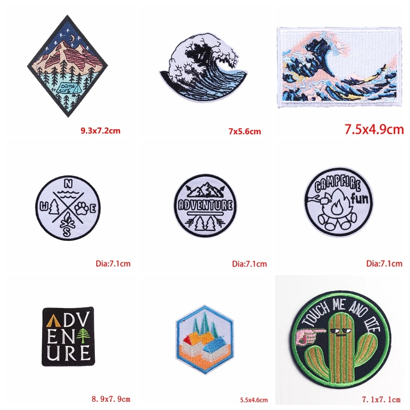 10 Uds. Parche para acampar en montaña, parche bordado ondulado, parches para planchar para ropa, parches termoadhesivos para ropa, chaqueta DIY