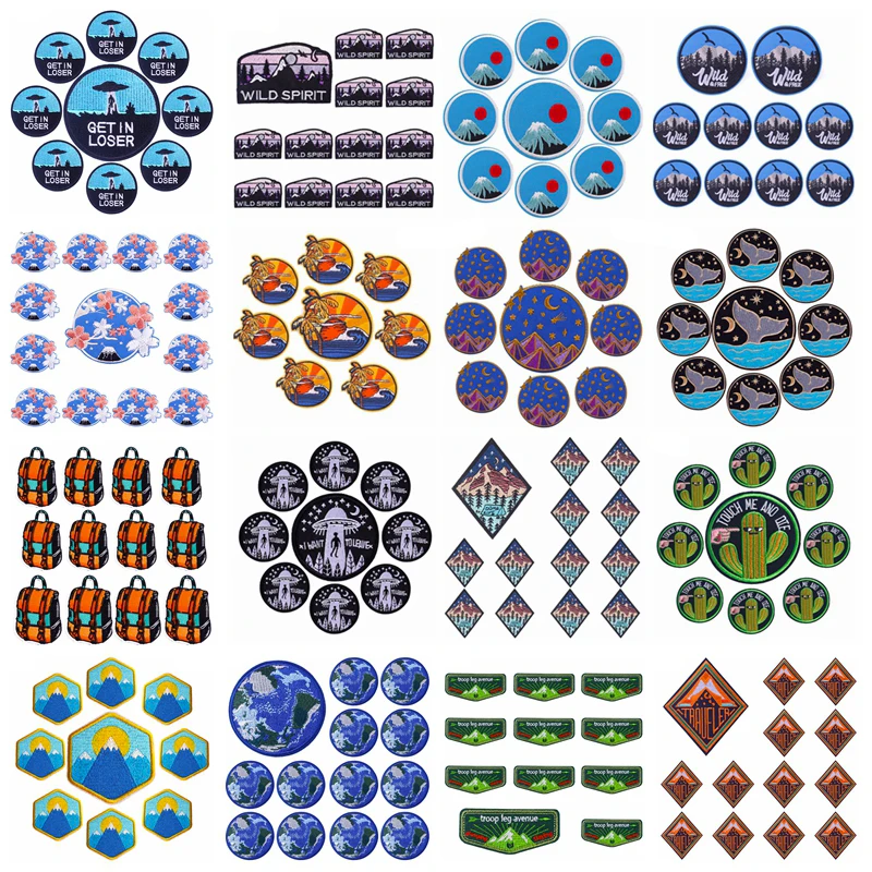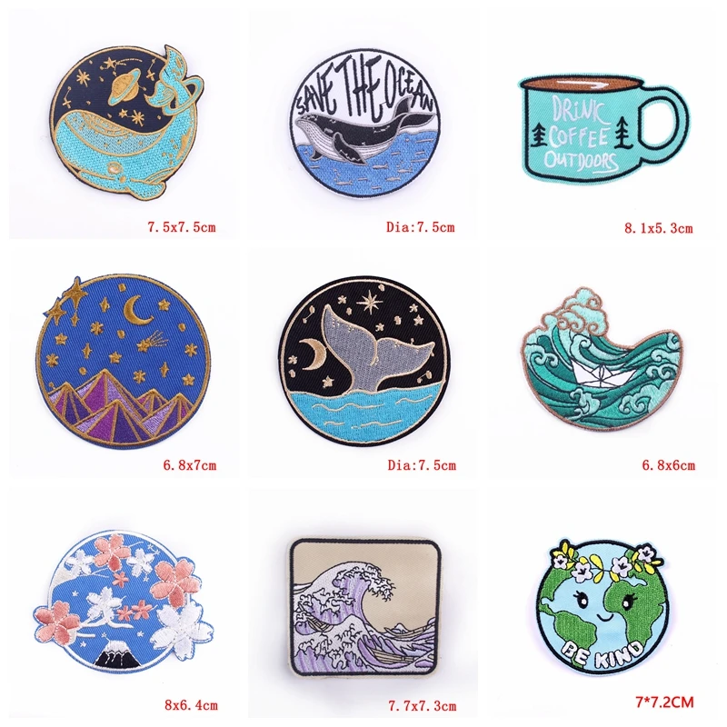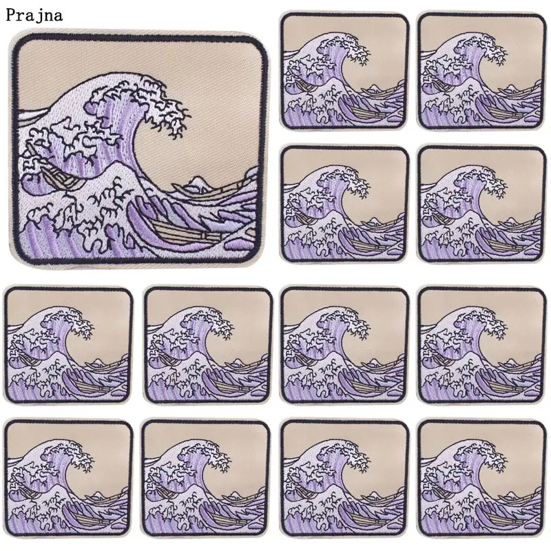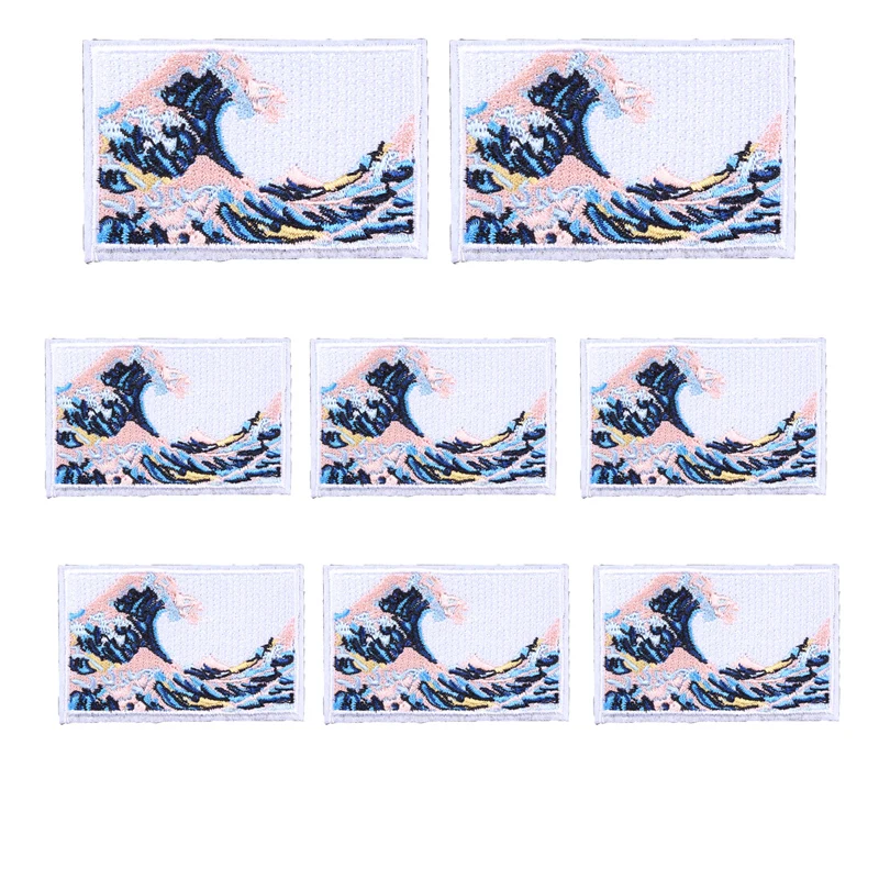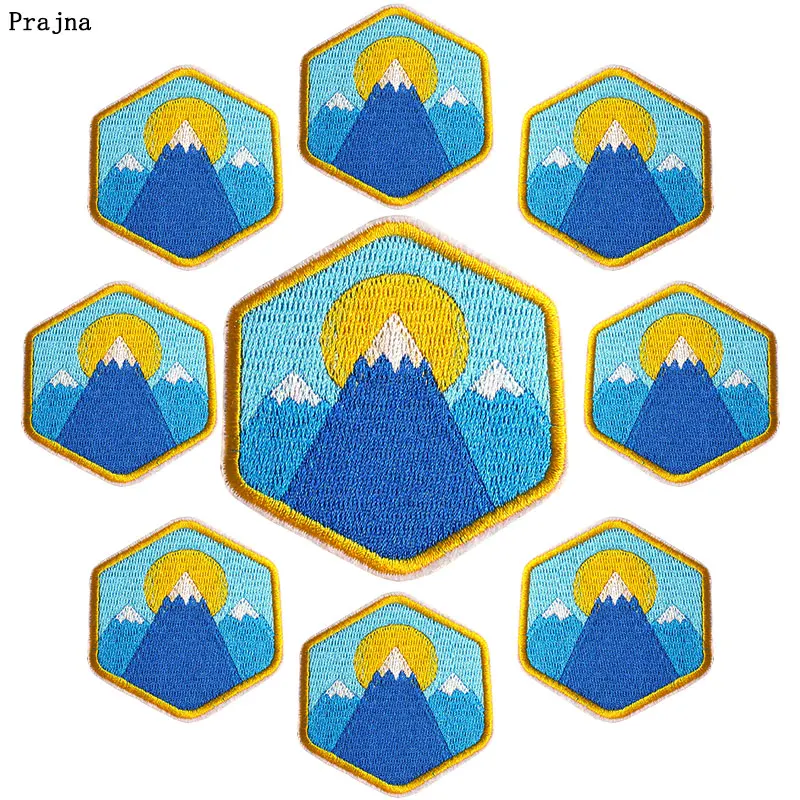 10 Uds. Parche para acampar en montaña, parche bordado ondulado, parches para planchar para ropa, parches termoadhesivos para ropa, chaqueta DIY