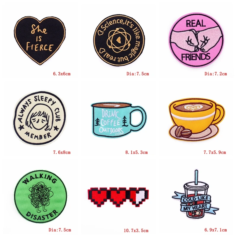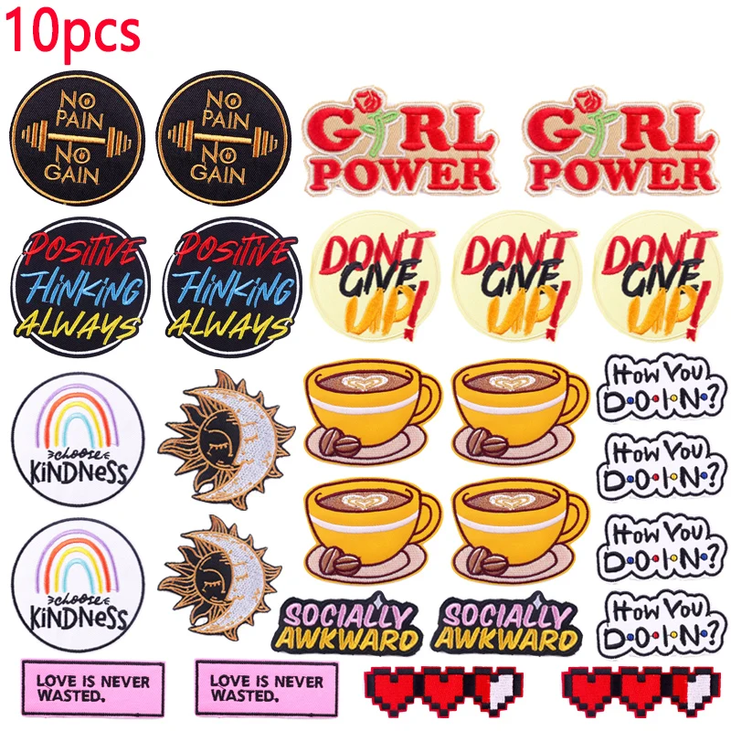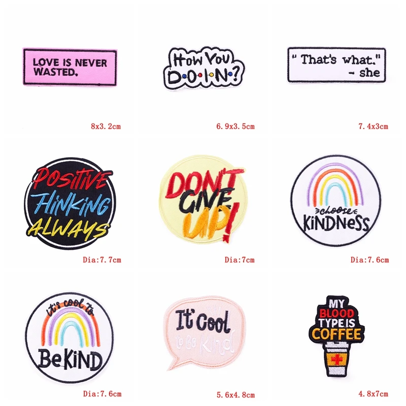 10 Uds. Parche de copa de dibujos animados/letras palabras positivas parche bordado Iroon en parches para ropa parches termoadhesivos insignias DIY