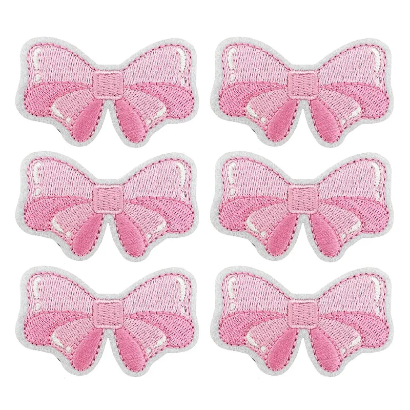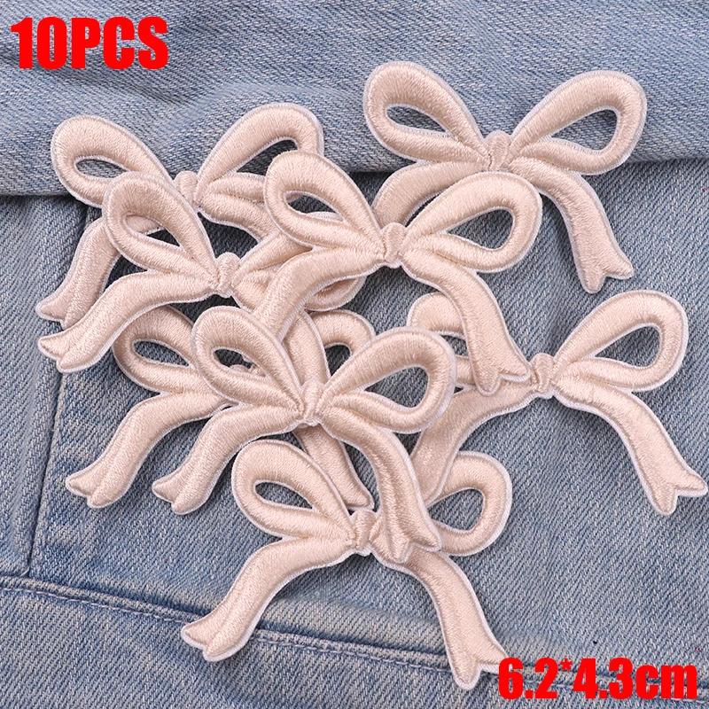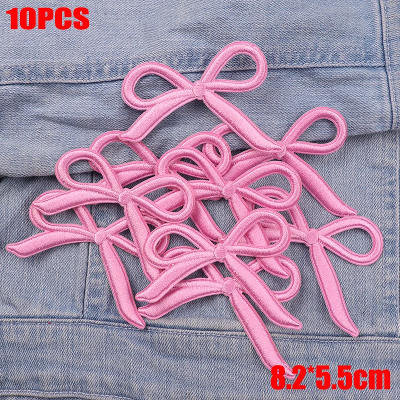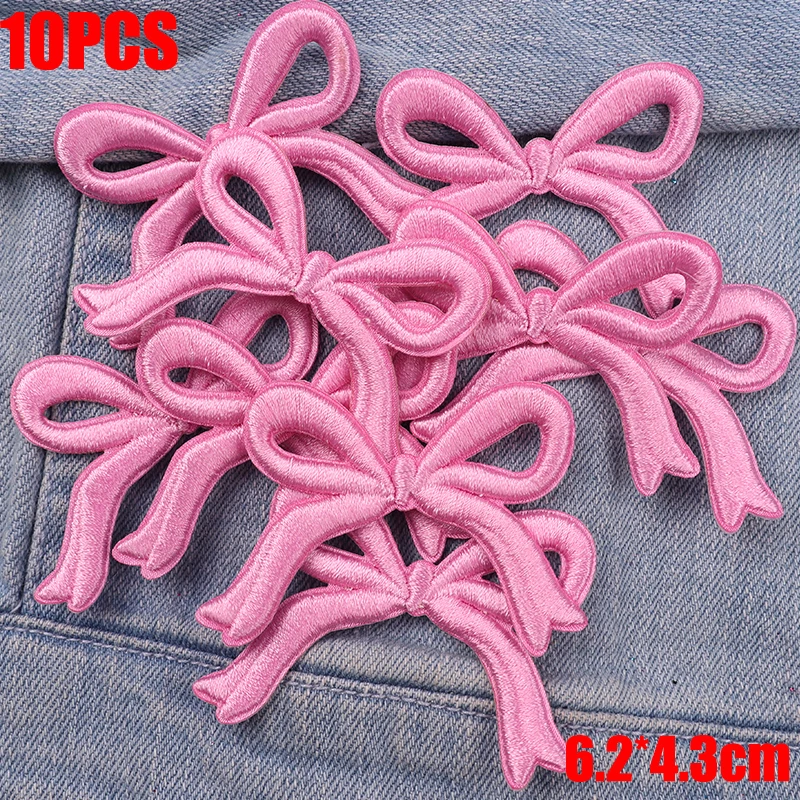 Parche bordado de pajarita rosa de dibujos animados, parches bordados DIY para planchar, parches termoadhesivos para ropa, decoración de ropa, 10 Uds.
