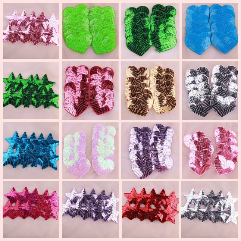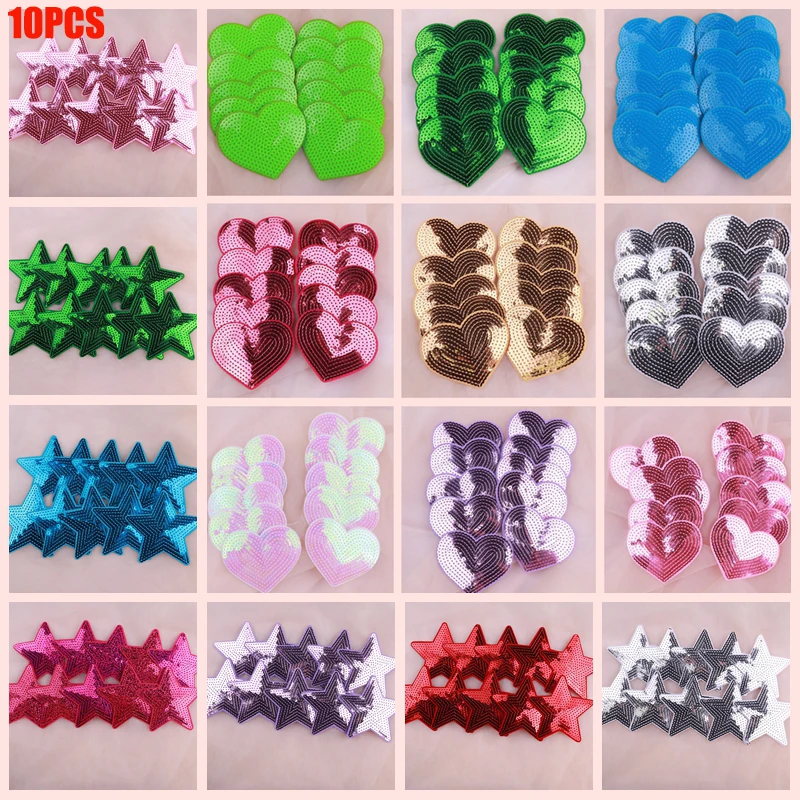 10 Uds. Parche de lentejuelas con estrellas y corazones de amor, parches bordados con lentejuelas, parches para planchar, ropa DIY, sombreros, decoración, pegatinas para coser