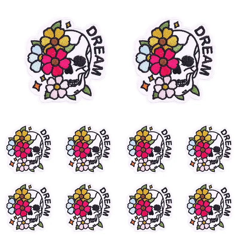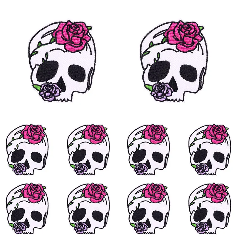 10PCS Punk Letter Patch Butterfly/Rose/Bottle Skull Embroidered Patches DIY Iron On Patches For Clothing Thermoadhesive Patches