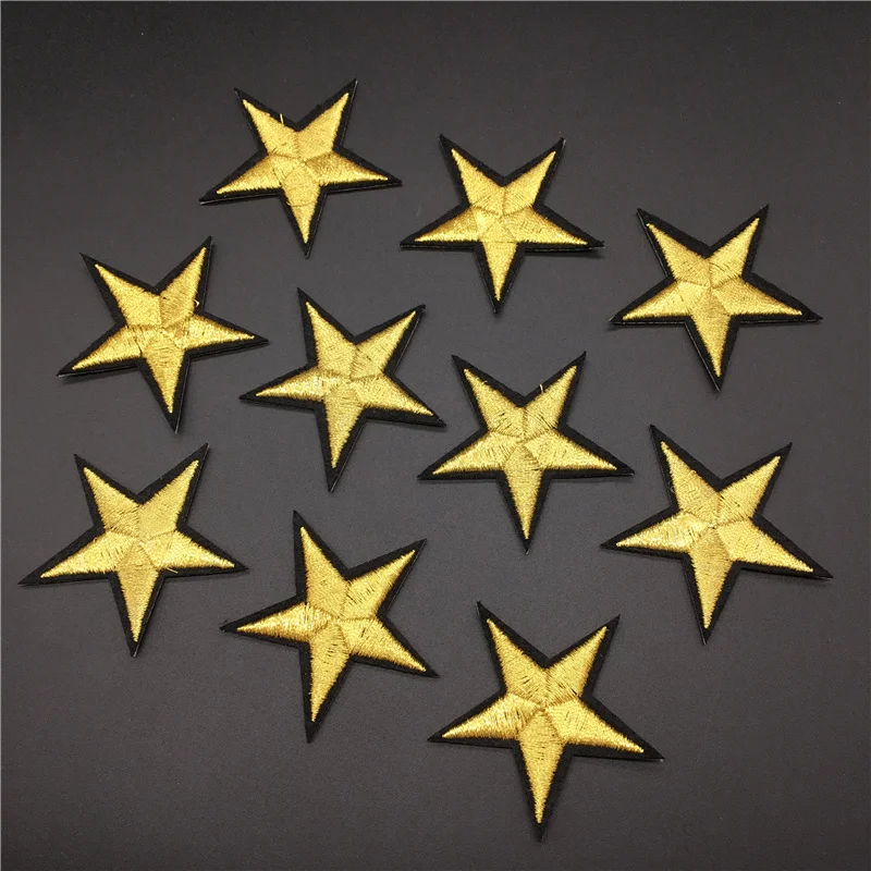 10 Uds. Parches con apliques de estrellas doradas para ropa, insignias de dibujos animados, rayas bordadas para planchar para ropa, pegatina de camiseta de costura Diy