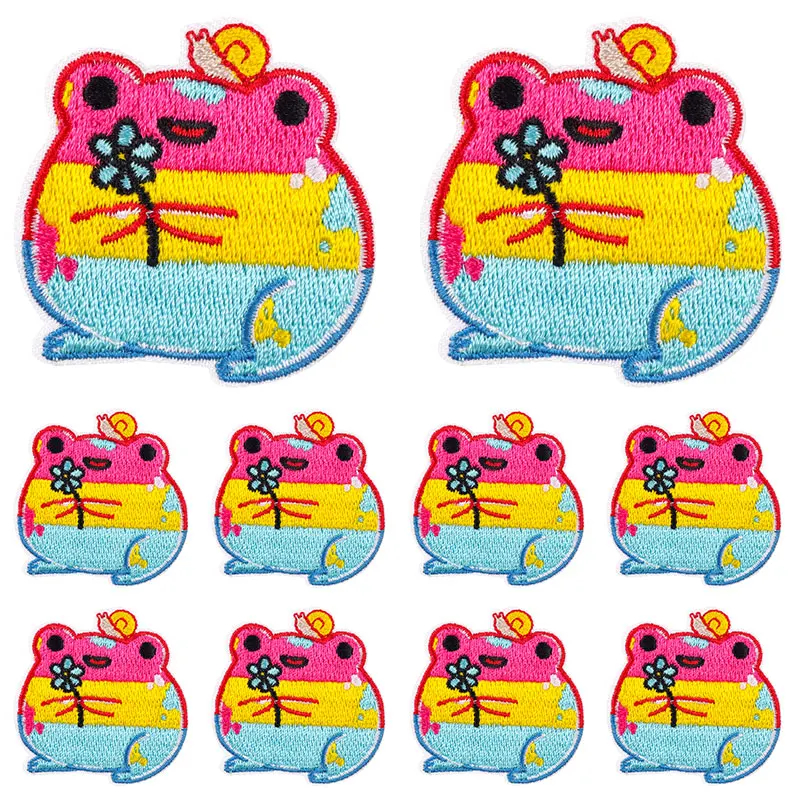 10 Uds. Parches bordados de animales de dibujos animados DIY, parches bordados de gato y rana para ropa, parches termoadhesivos para ropa