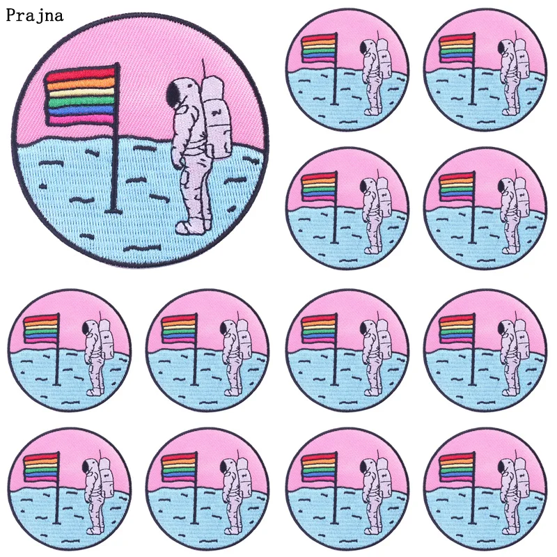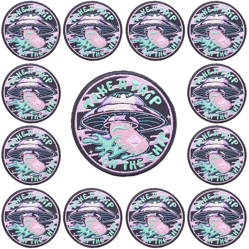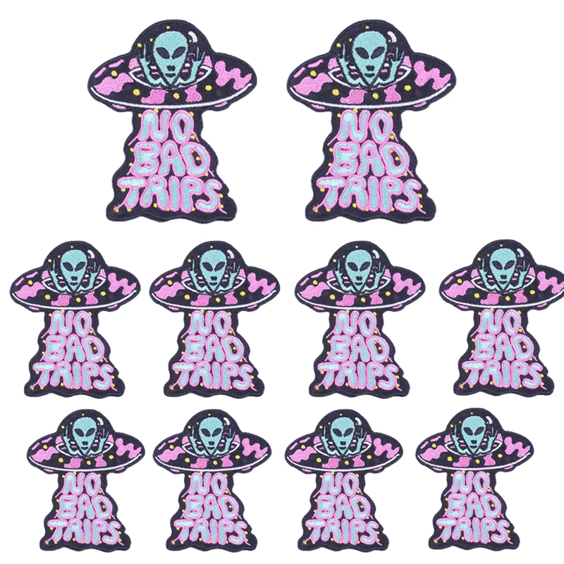 10 Uds., venta al por mayor, parches bordados de astronauta UFO espacial para ropa, parche de dibujos animados DIY, parches de hierro para ropa, insignias de costura