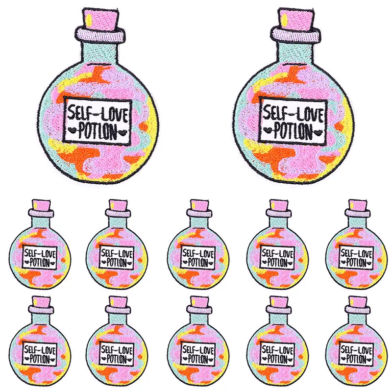 Parches bordados de botellas de dibujos animados, parches termoadhesivos para ropa, parche termoadhesivo para ropa, parche para taza de café, 10 Uds.